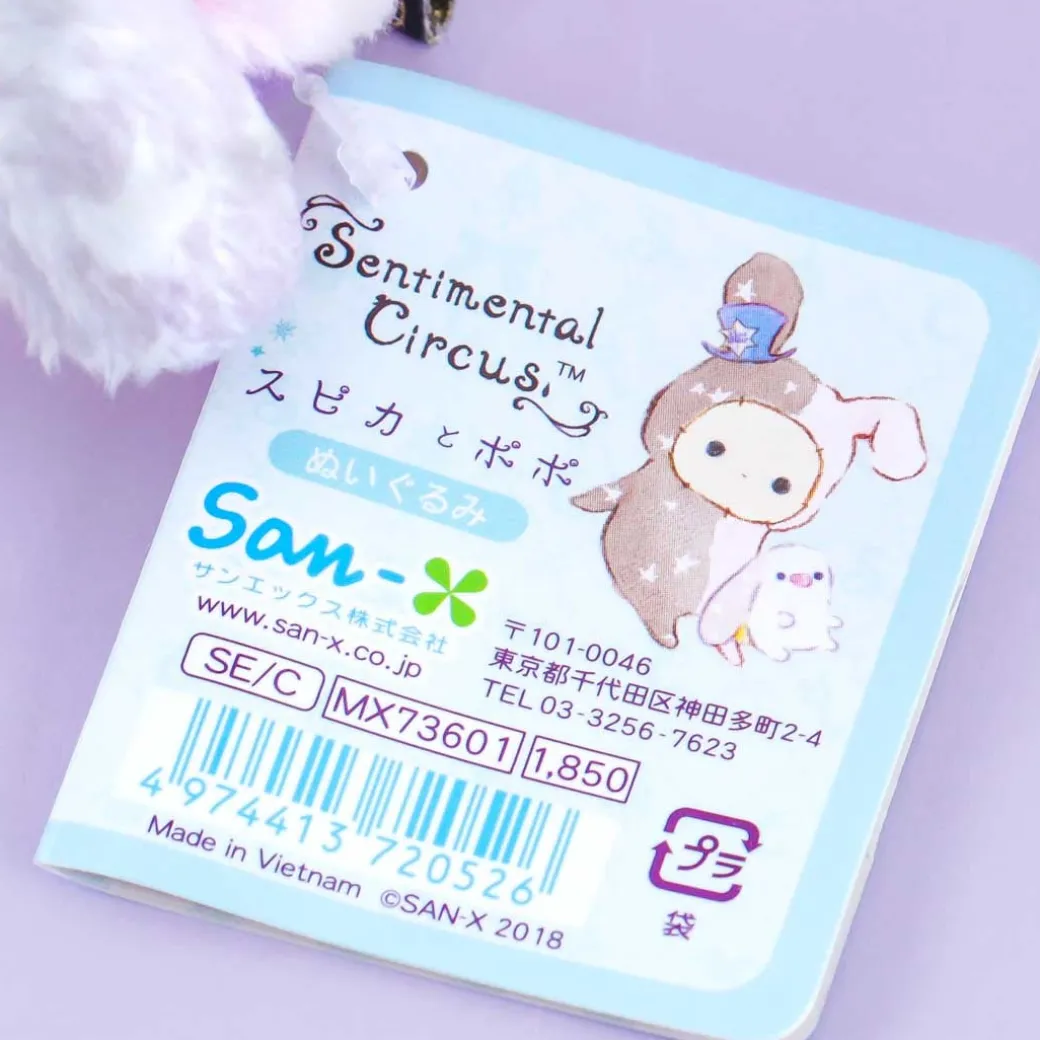 Join Spica in an imaginary circus show with this super soft plushie! The medium-sized plushie wears a top hat and is accompanied by its bestie, Popo.