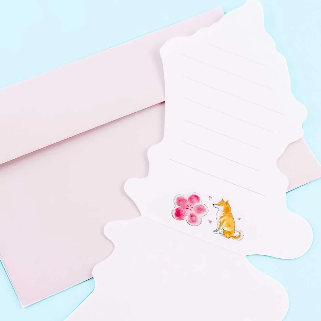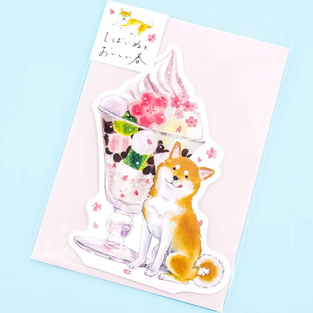 - A kawaii die-cut card illustrated with a Shiba Inu and a parfait