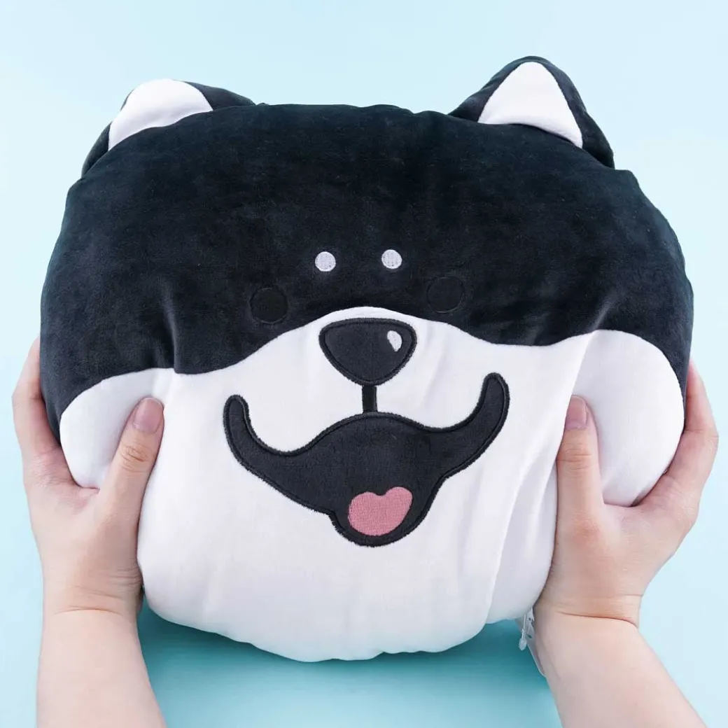 - A kawaii large-sized black Shiba Inu plushie cushion from the Shibanban series
