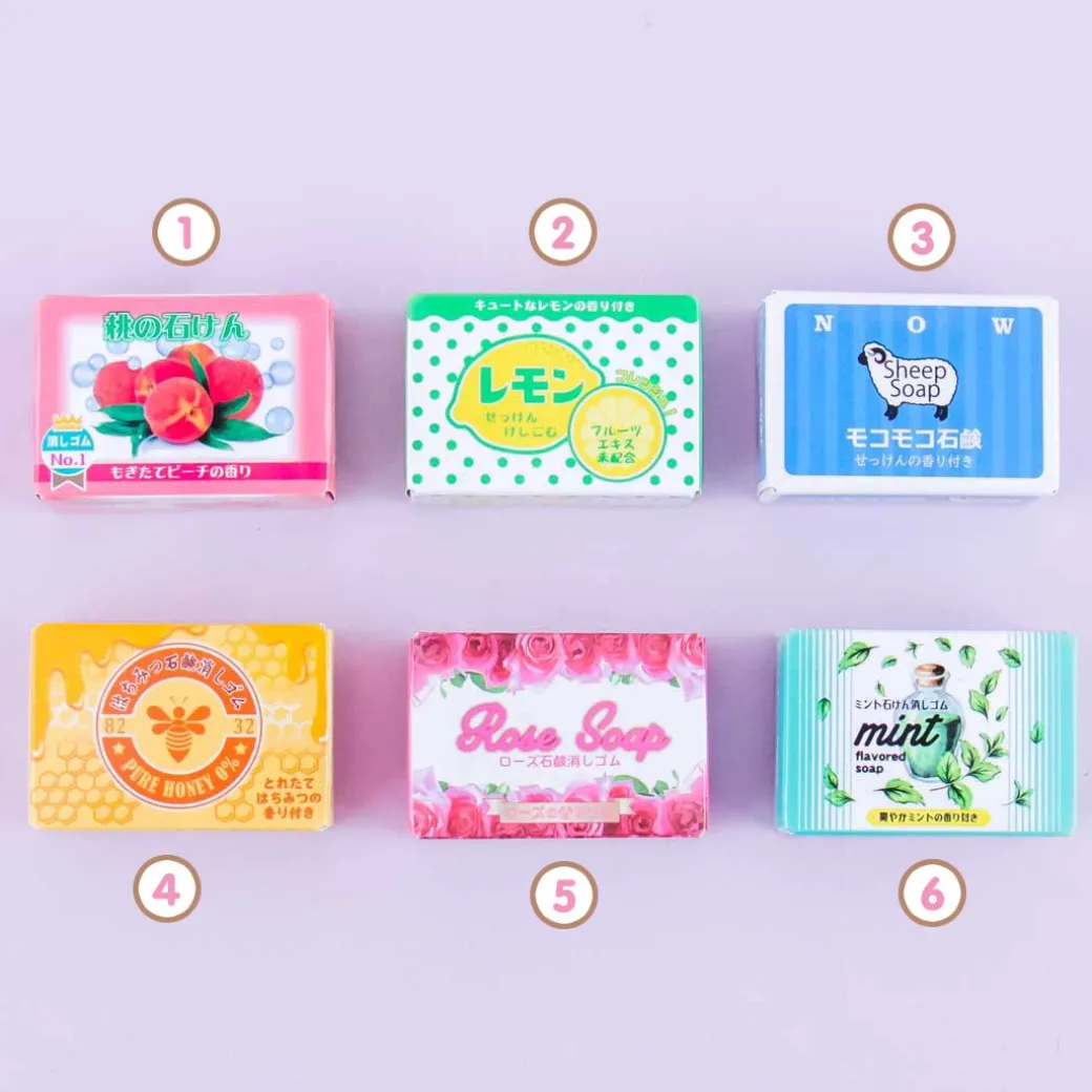 - Scents: blue – moko moko soap, green – lemon, yellow – honey, mint – mint, pink -peach, rose – rose