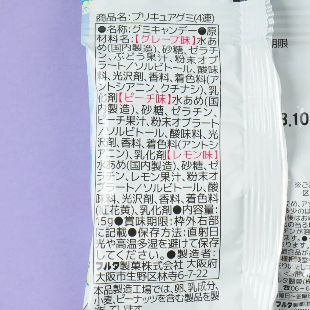 Enjoy the fruity and refreshing tastes of grapes, peaches, and lemons with these packs of gummies. The packaging features a kawaii illustration of characters from Soaring Sky! Pretty Cure. It’s perfect for rewatching your favorite anime series.