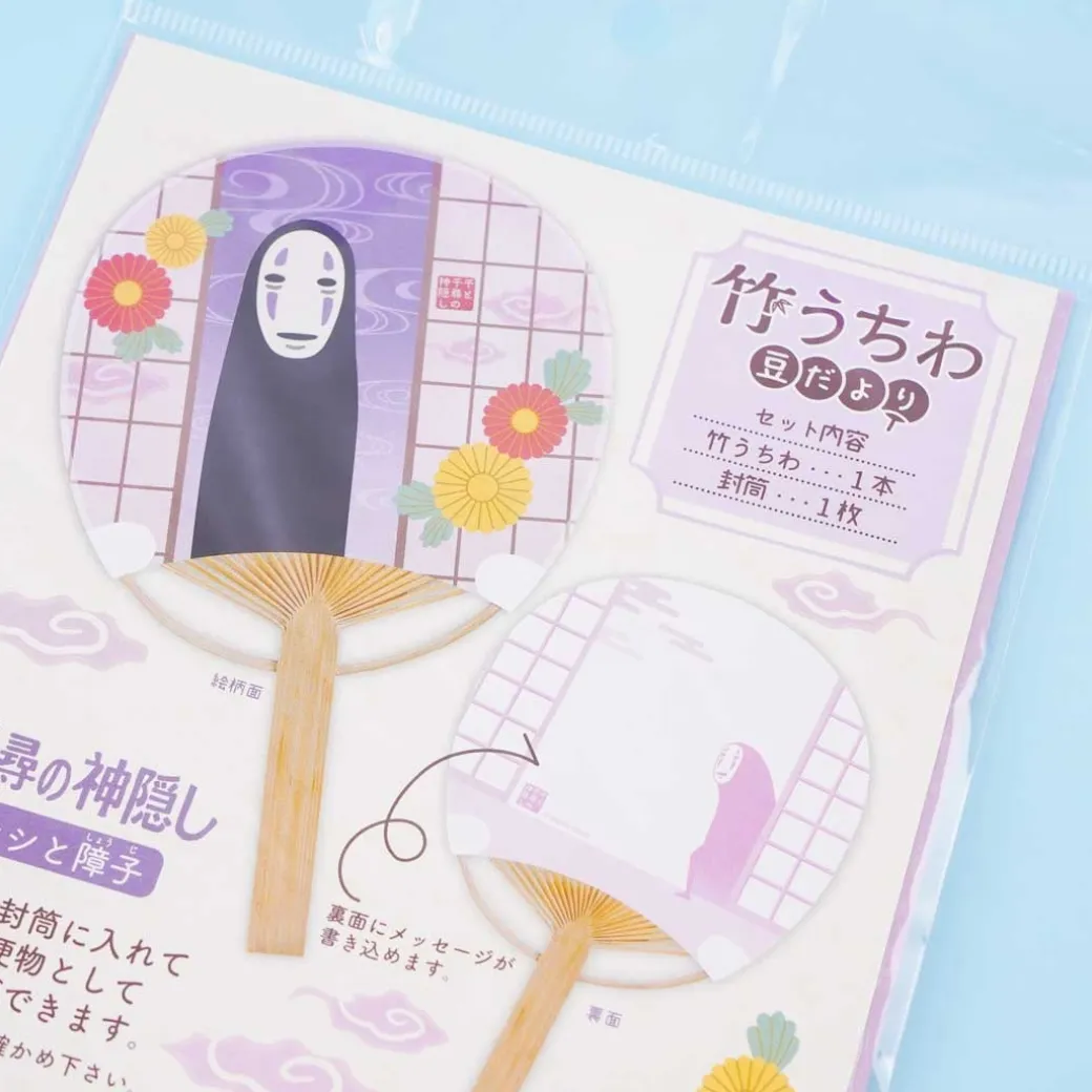- A super kawaii bamboo fan-shaped greeting card illustrated with No Face from Spirited Away