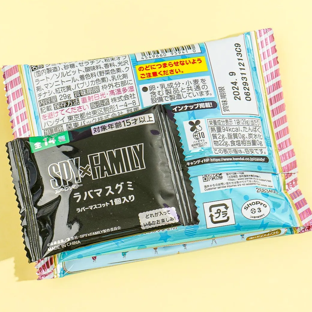 Enjoy snacking on these yummy fruit-flavored gummies! They come in different shapes and two flavors — apple and orange. The sweets also come with a free rubber charm that features a character from the anime SPY x FAMILY.