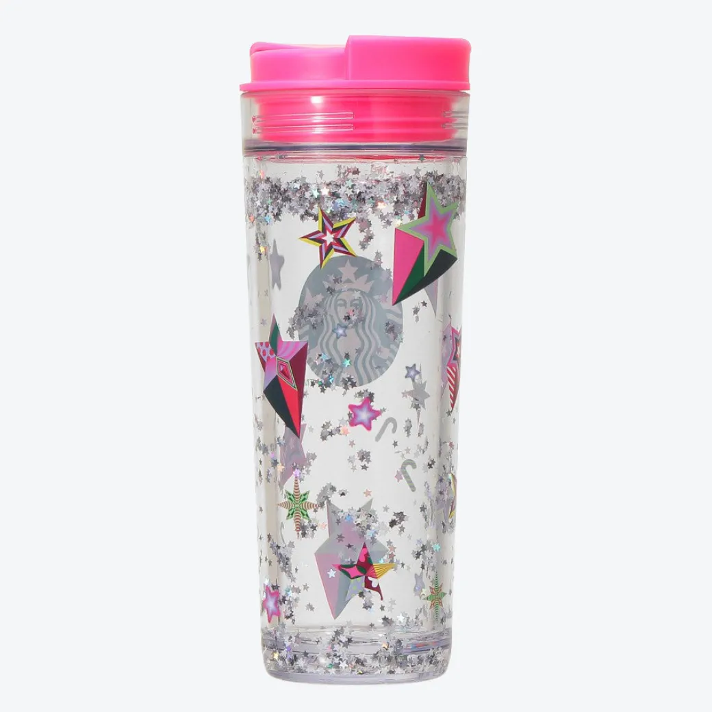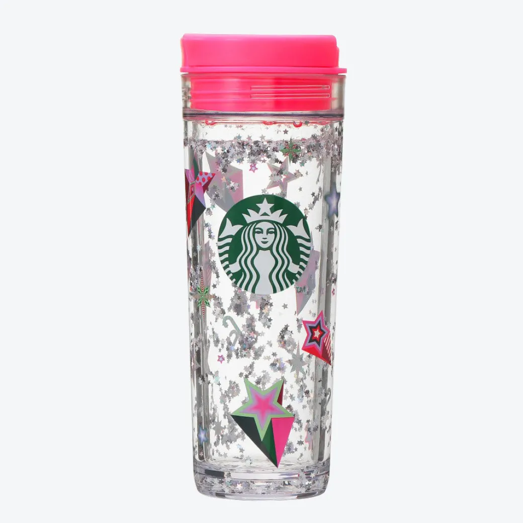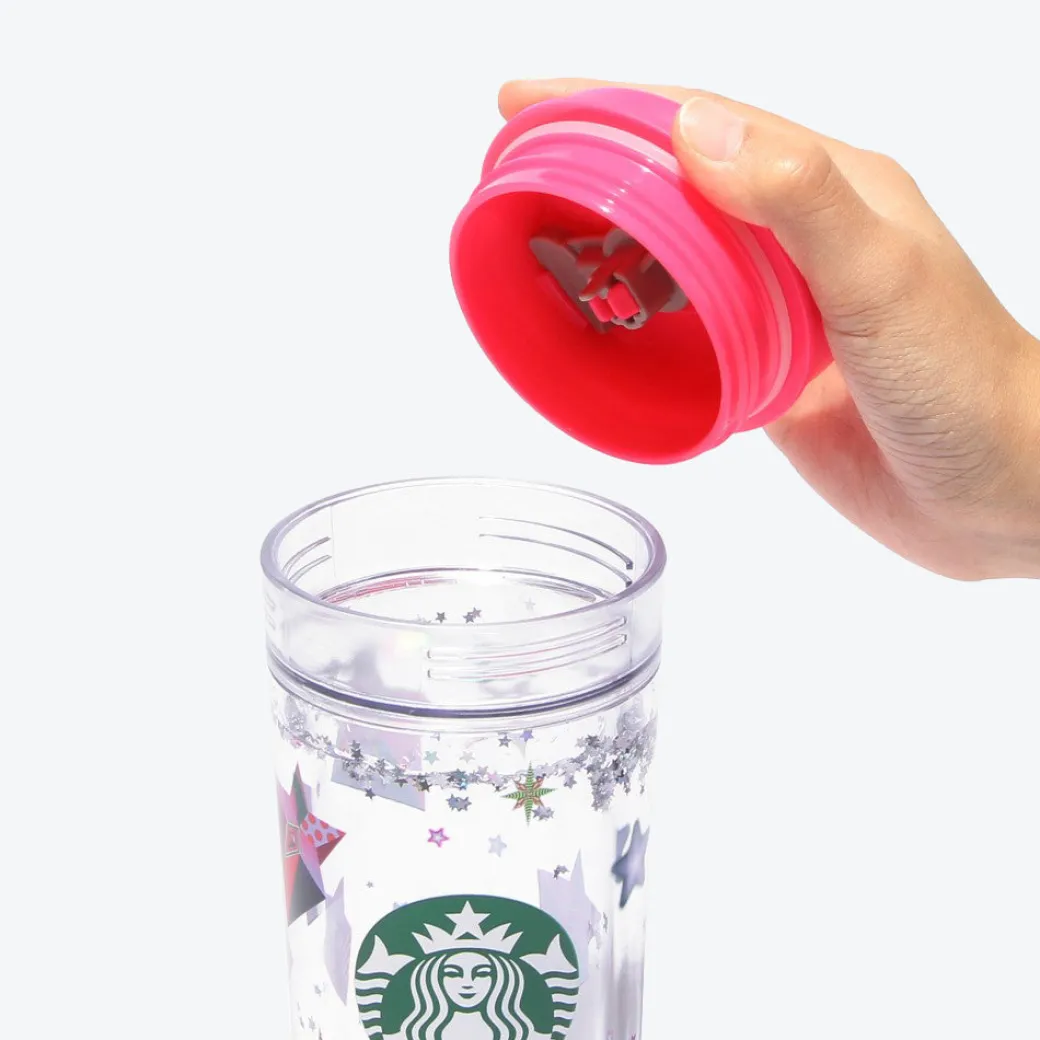 Make snack time this Christmas season even more special by pouring your favorite drink into this sparkly tumbler! It was made by Starbucks Japan to celebrate the holidays. This stylish transparent tumbler features a print of the Starbucks siren log. Not only that but has glittery water filled between its walls of glass. Tilt the tumbler and watch the star-shaped glitter dance!