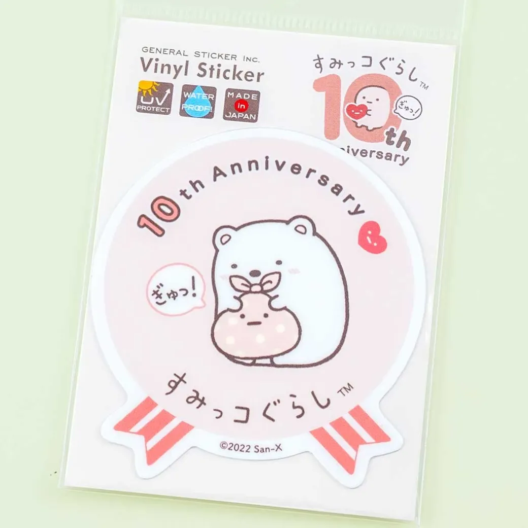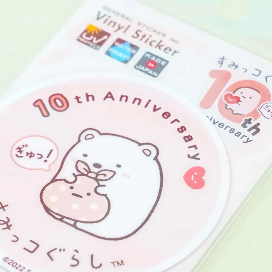 - A cute vinyl sticker celebrating the 10th Anniversary of the Sumikko Gurashi