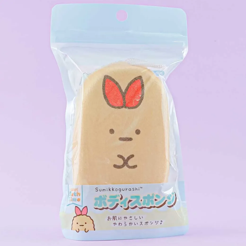 - A cute Sumikko Gurashi body sponge with an illustration of Ebifurai