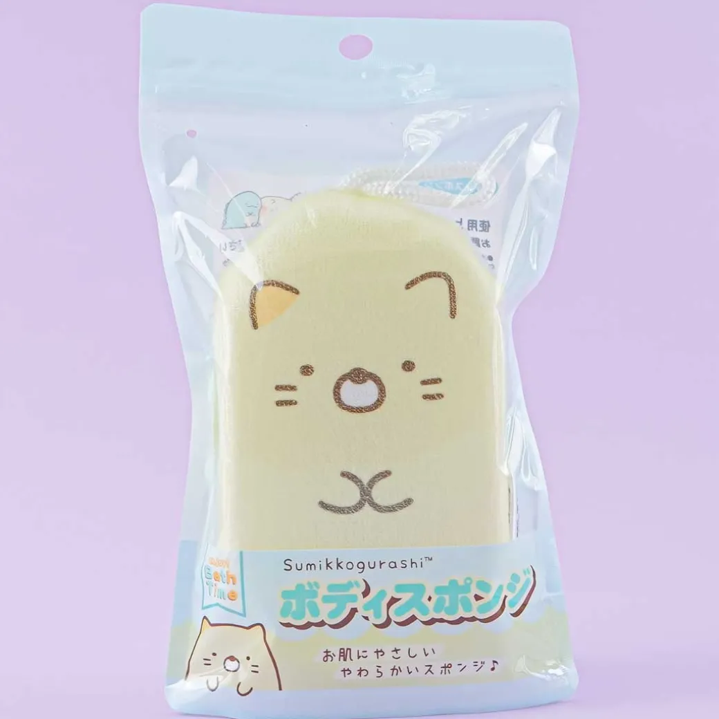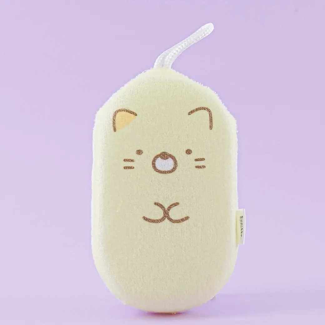 - A kawaii Sumikko Gurashi body sponge featuring Neko