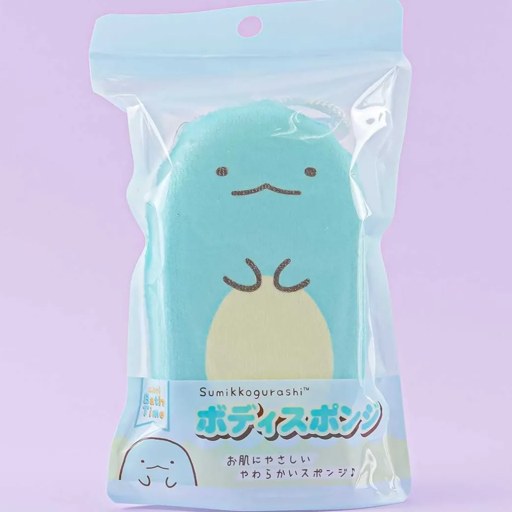 - A cute Sumikko Gurashi body sponge with an illustration of Tokage