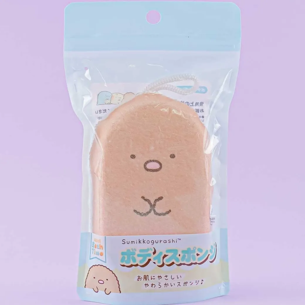- A kawaii Sumikko Gurashi body sponge featuring Tonkatsu