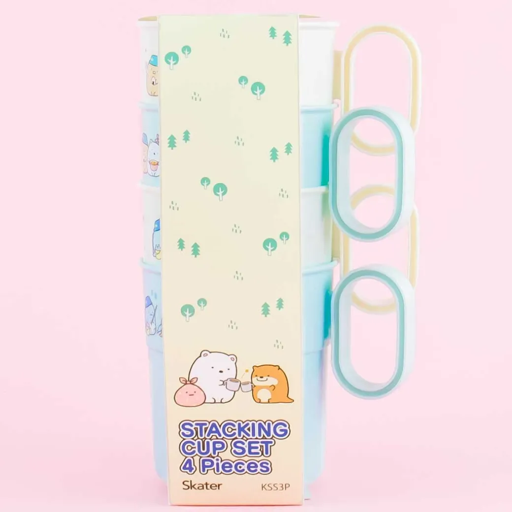 - A kawaii 4-piece cup set featuring the Sumikko Gurashi characters camping together
