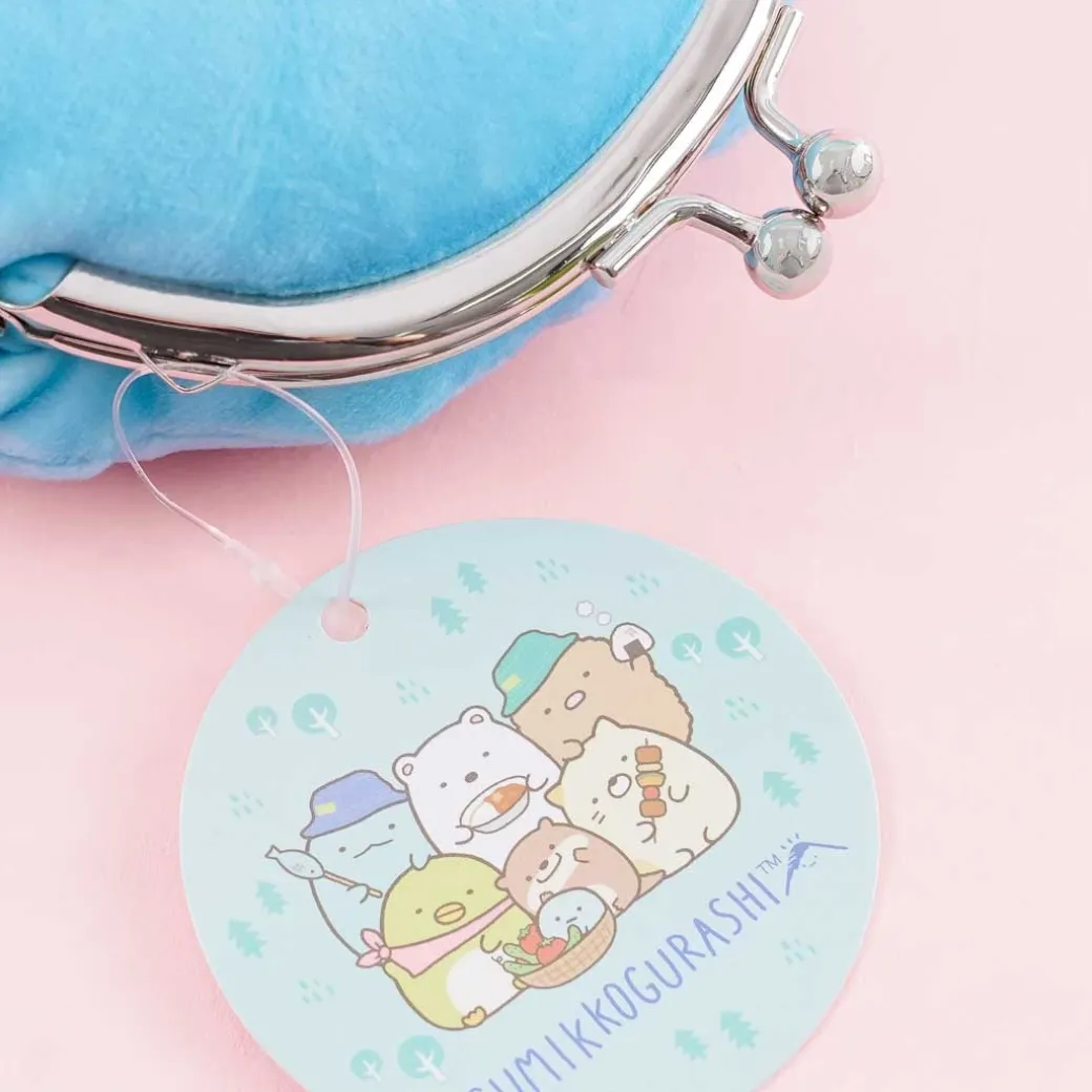 - A kawaii Tokage coin purse from the Sumikko Gurashi series holding a small fish