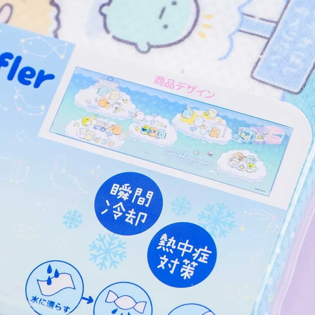 - A cute towel featuring prints of the Sumikko Gurashi relaxing among the clouds