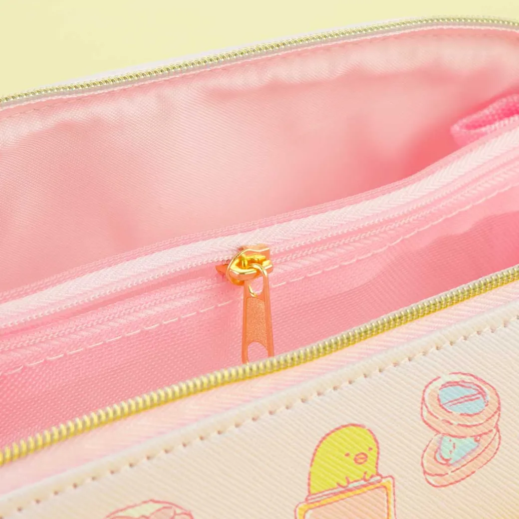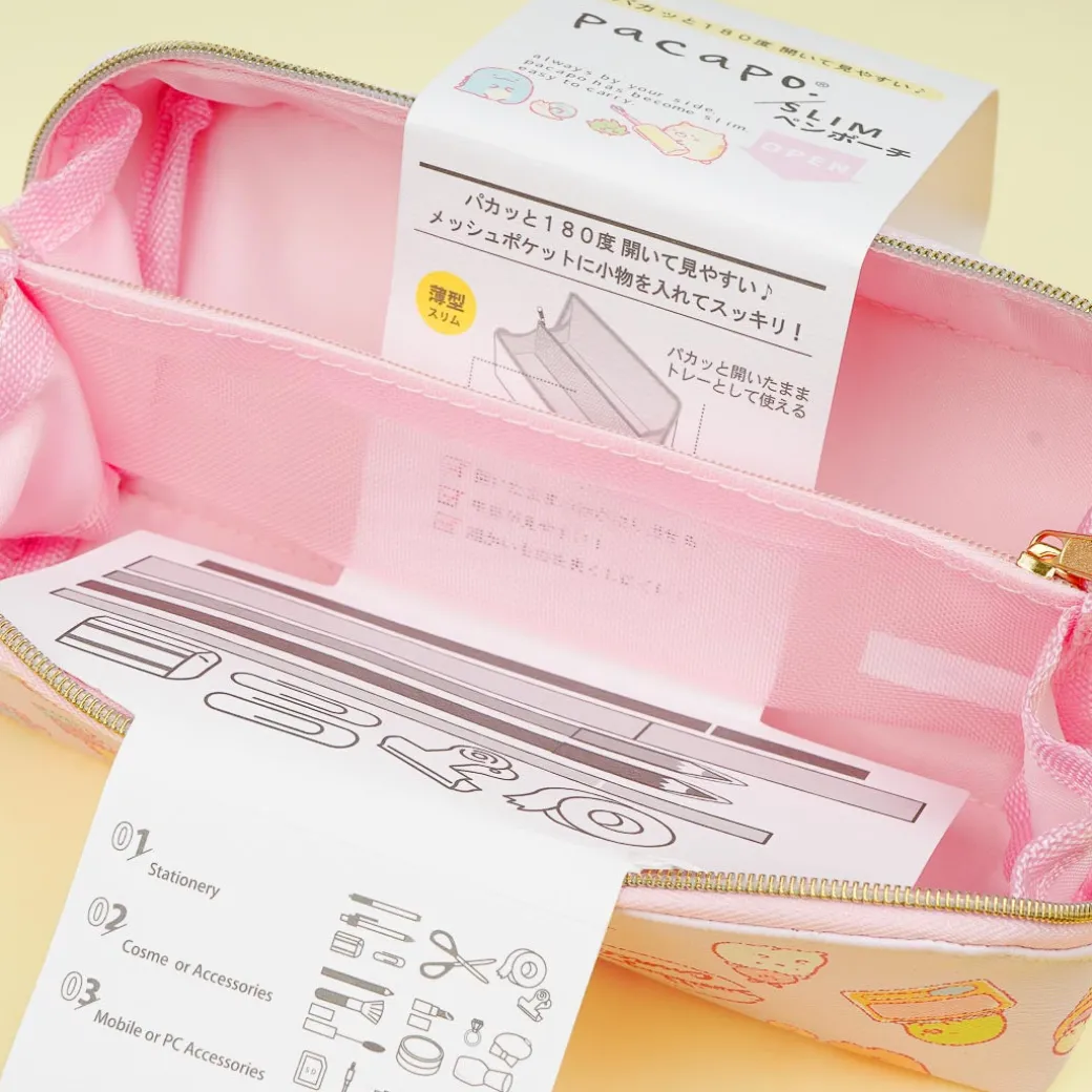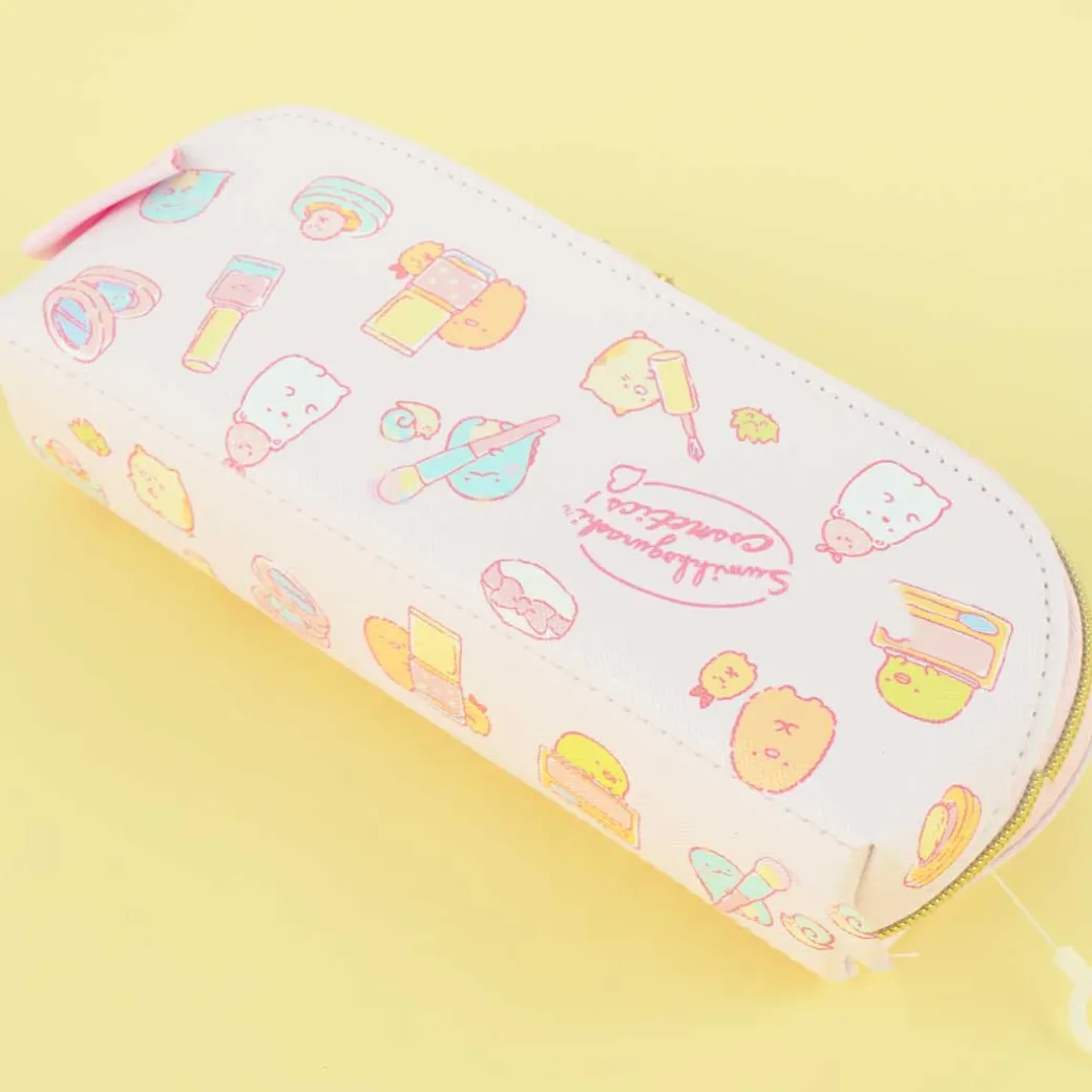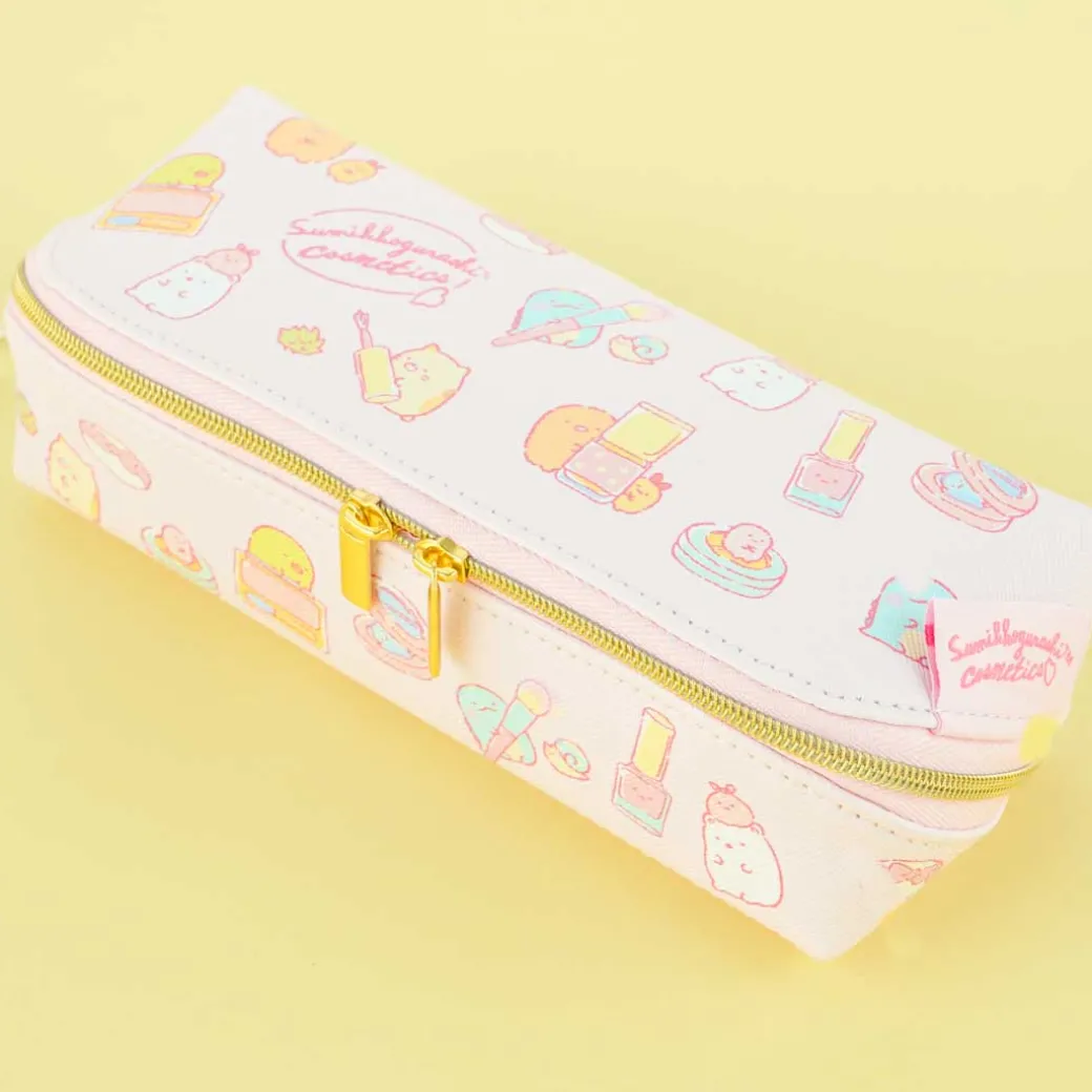 Keep your favorite pens and pencils inside this slim pouch! It’s decorated with illustrations of the Sumikko Gurashi characters holding cosmetics! The case a has a unique double zipper closure that opens the case horizontally.