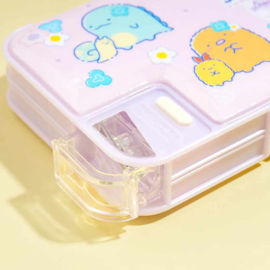 Keep your pencils and other writing materials in this double-sided pencil case featuring Sumikko Gurashi! It features magnetic lids, pencil pockets, a built-in sharpener, and an attached schedule and name tag.