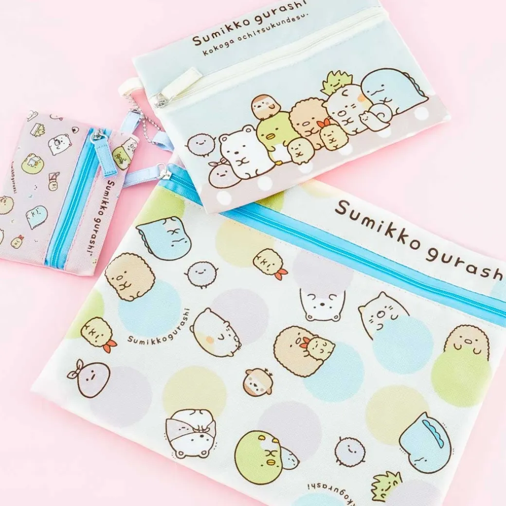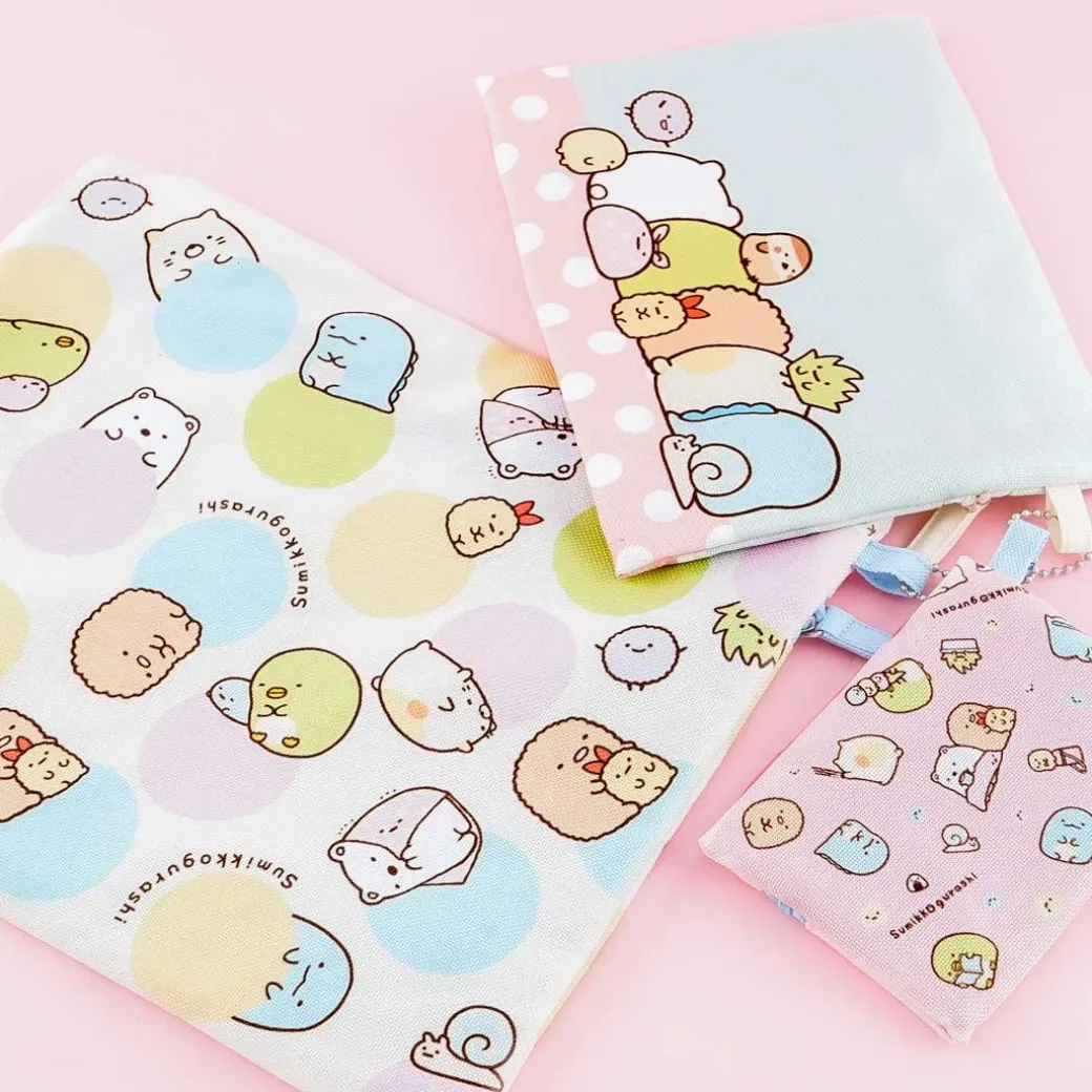 - A set of flat pouches featuring the Sumikko Gurashi gang