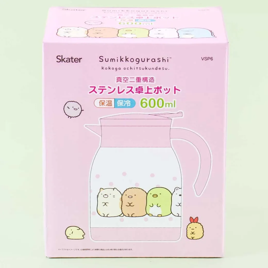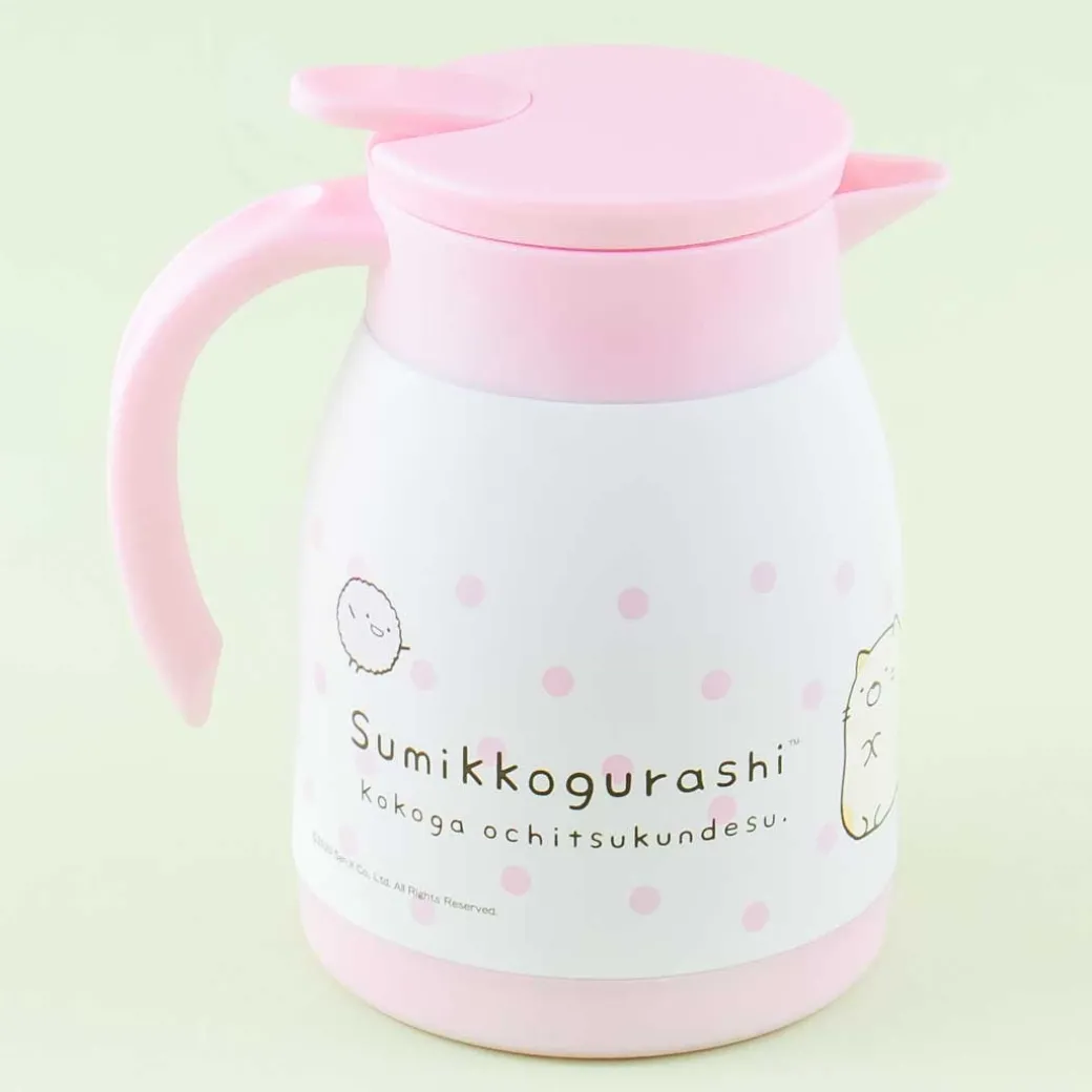 - A kawaii stainless steel insulated teapot featuring the Sumikko Gurashi gang and polka dots
