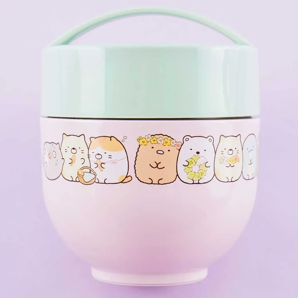- A super cute bento bowl illustrated with the Sumikko Gurashi gang playing with flowers