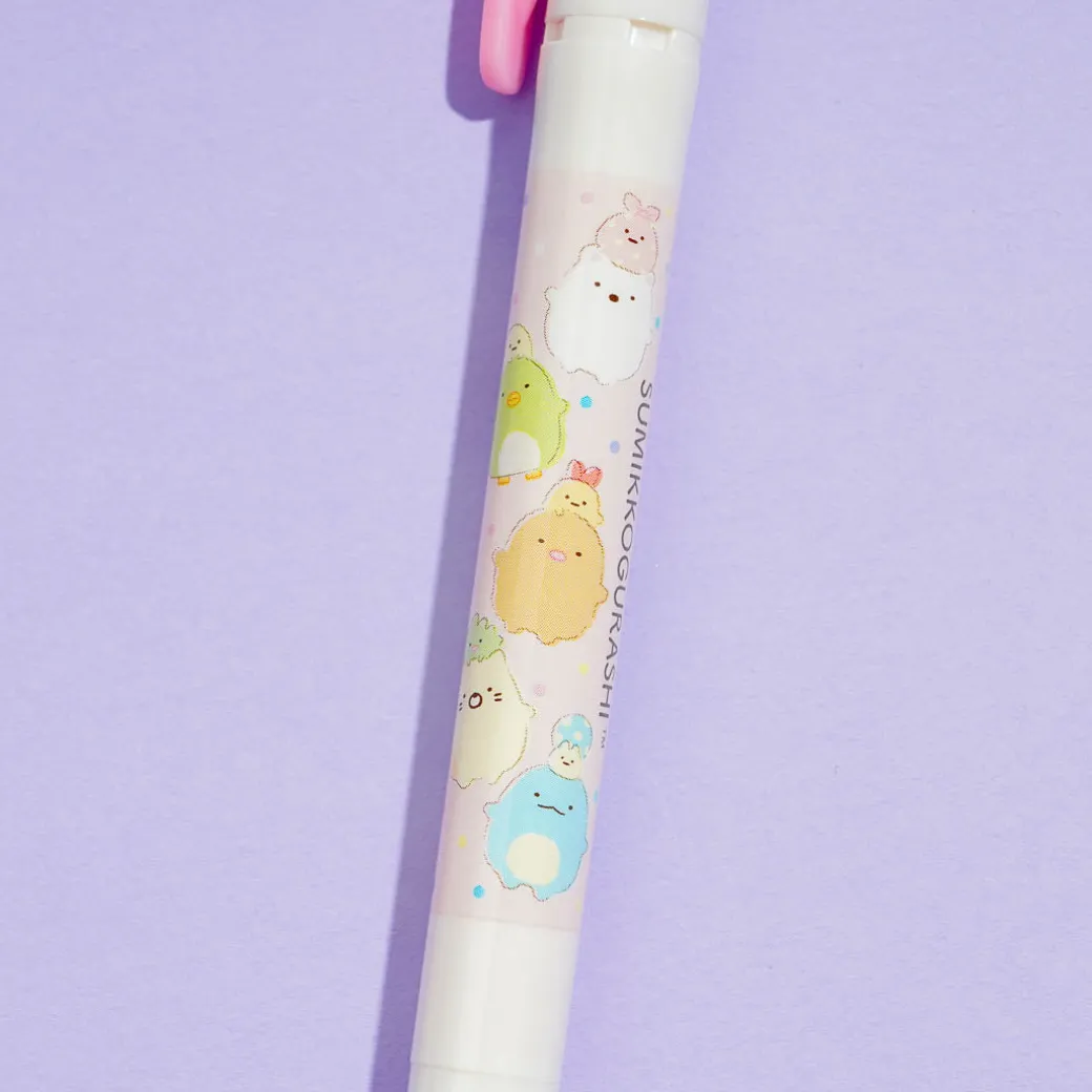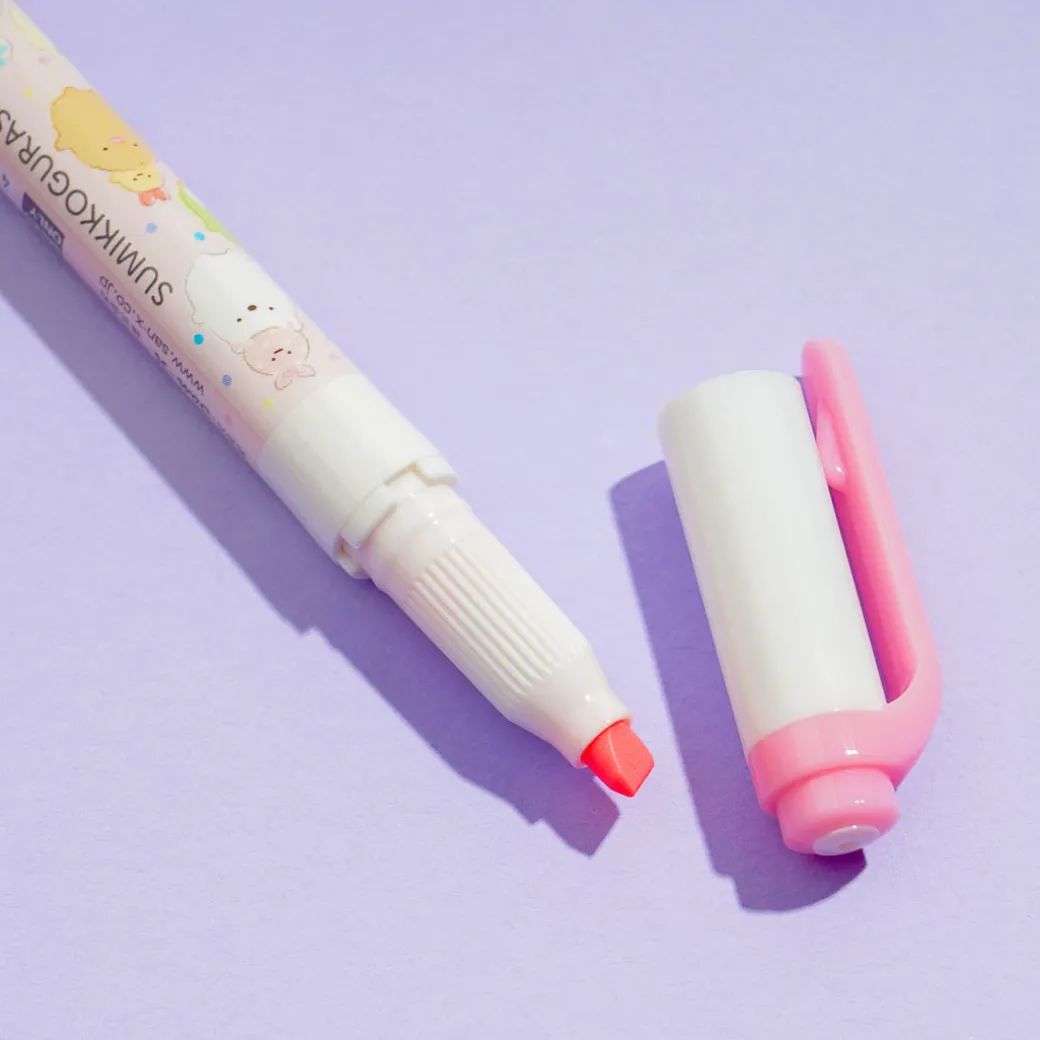 Use this kawaii highlighter to add colorful lines to your study notes! It features cute illustrations of Sumikko Gurashi and a pen tip that can be used to write both bold and fine lines. This highlighter comes in pink fluorescent ink.
