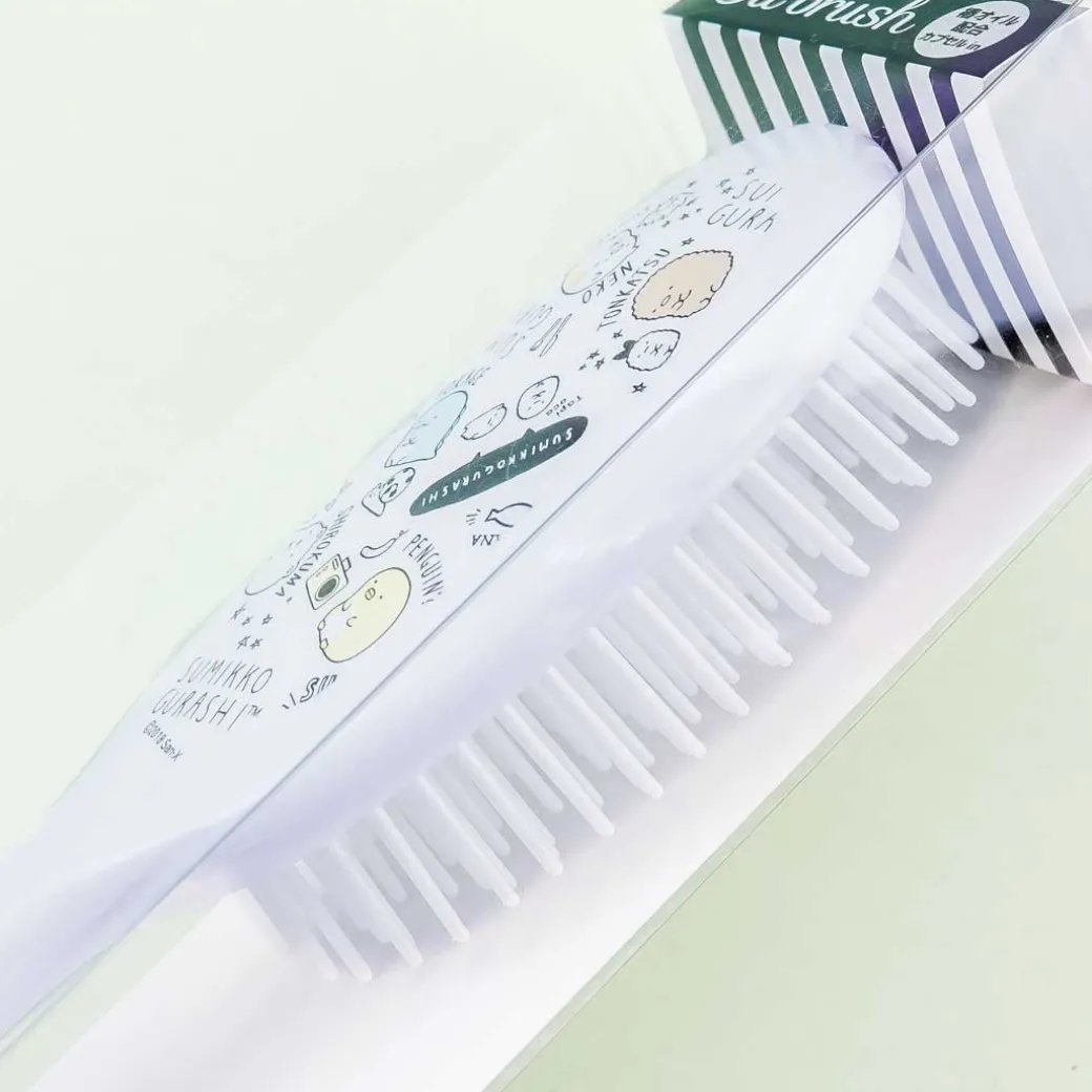 - A cute hairbrush illustrated with the Sumikko Gurashi gang spending time together