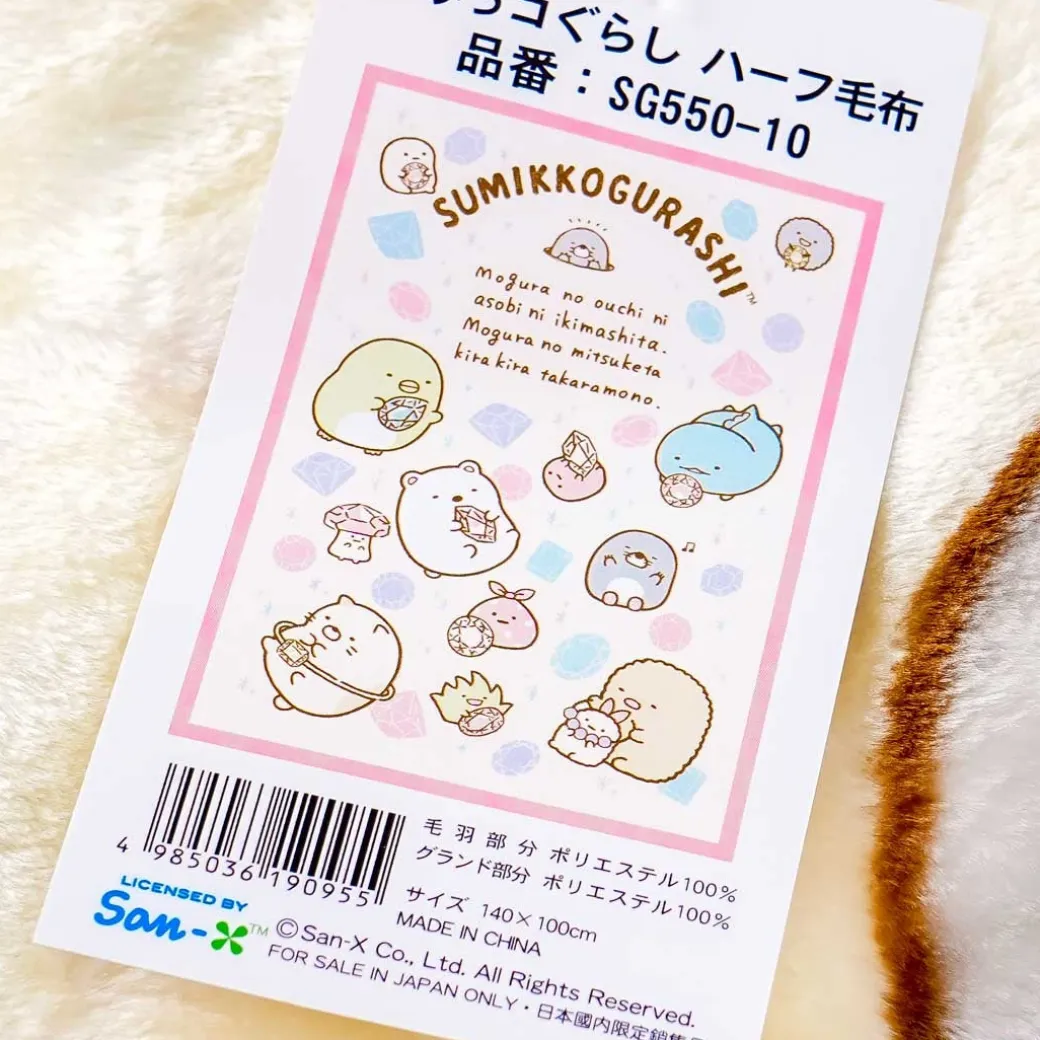 - A cute long blanket with an illustration of the Sumikko Gurashi gang and large-sized jewels