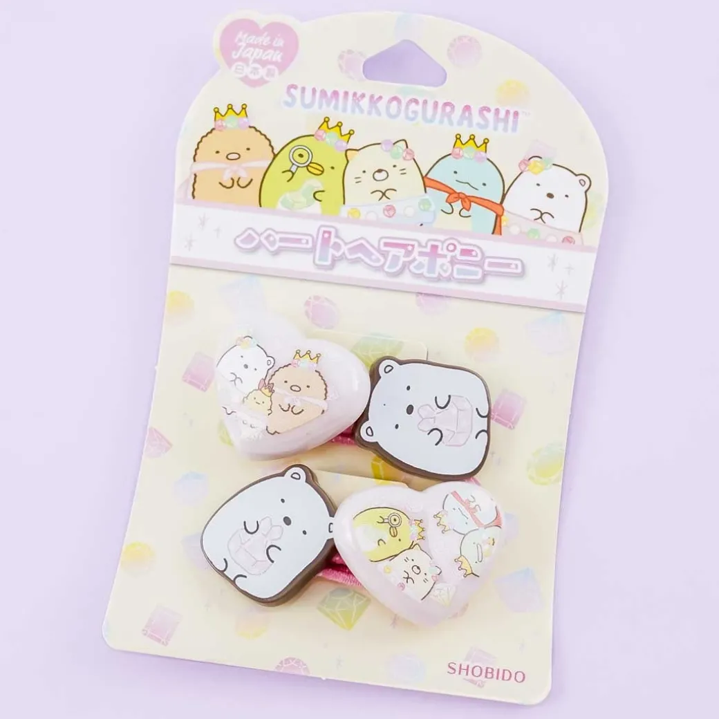 - A pair of kawaii hair ties with a die-cut Shirokuma and a heart-shaped charm