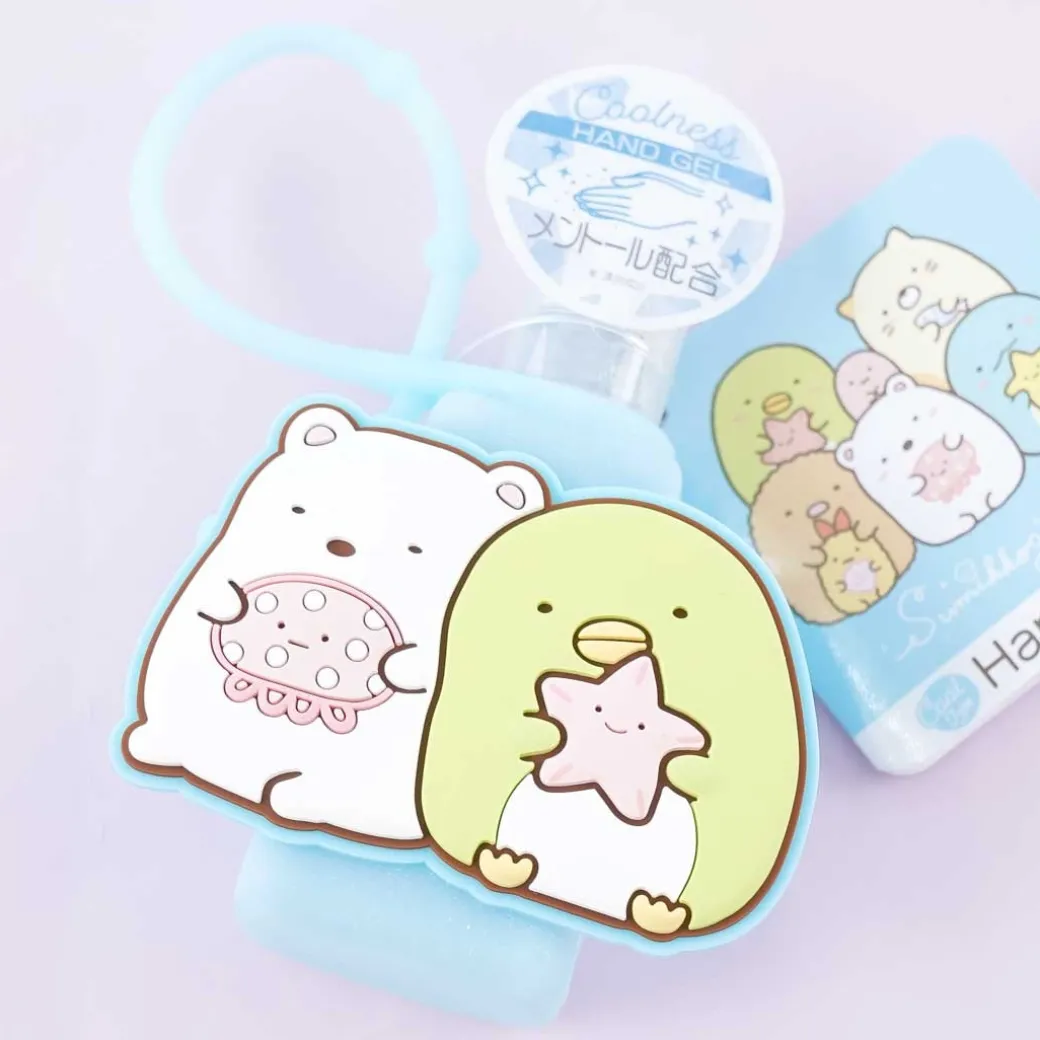 - A bottle of hand gel with a silicon case illustrated with Shirokuma and Penguin? from Sumikko Gurashi