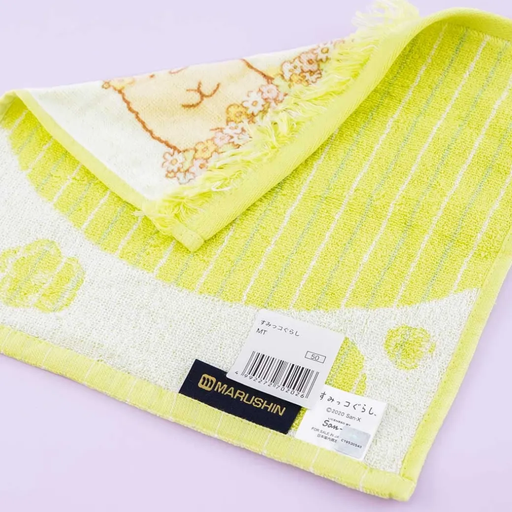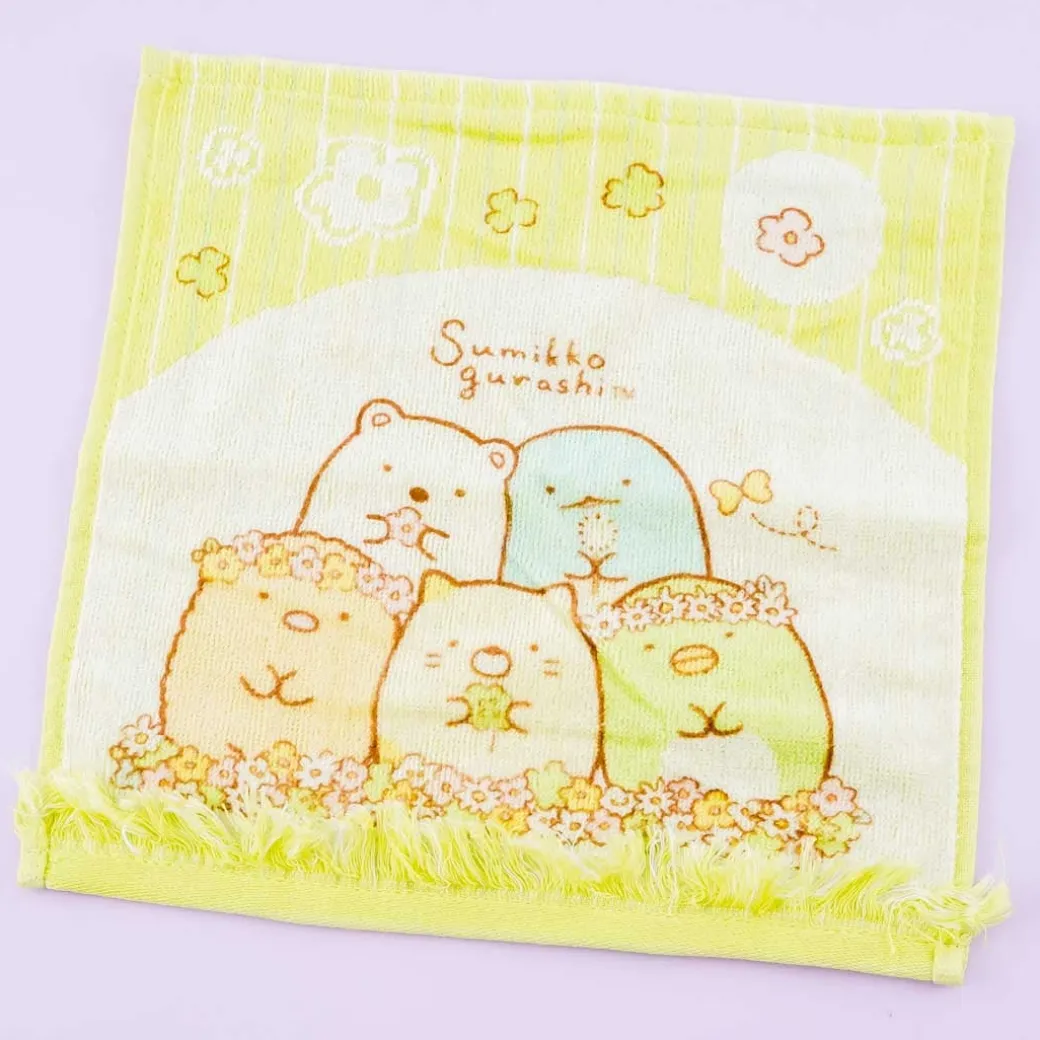 - A kawaii hand towel featuring prints of the Sumikko Gurashi with flower crowns
