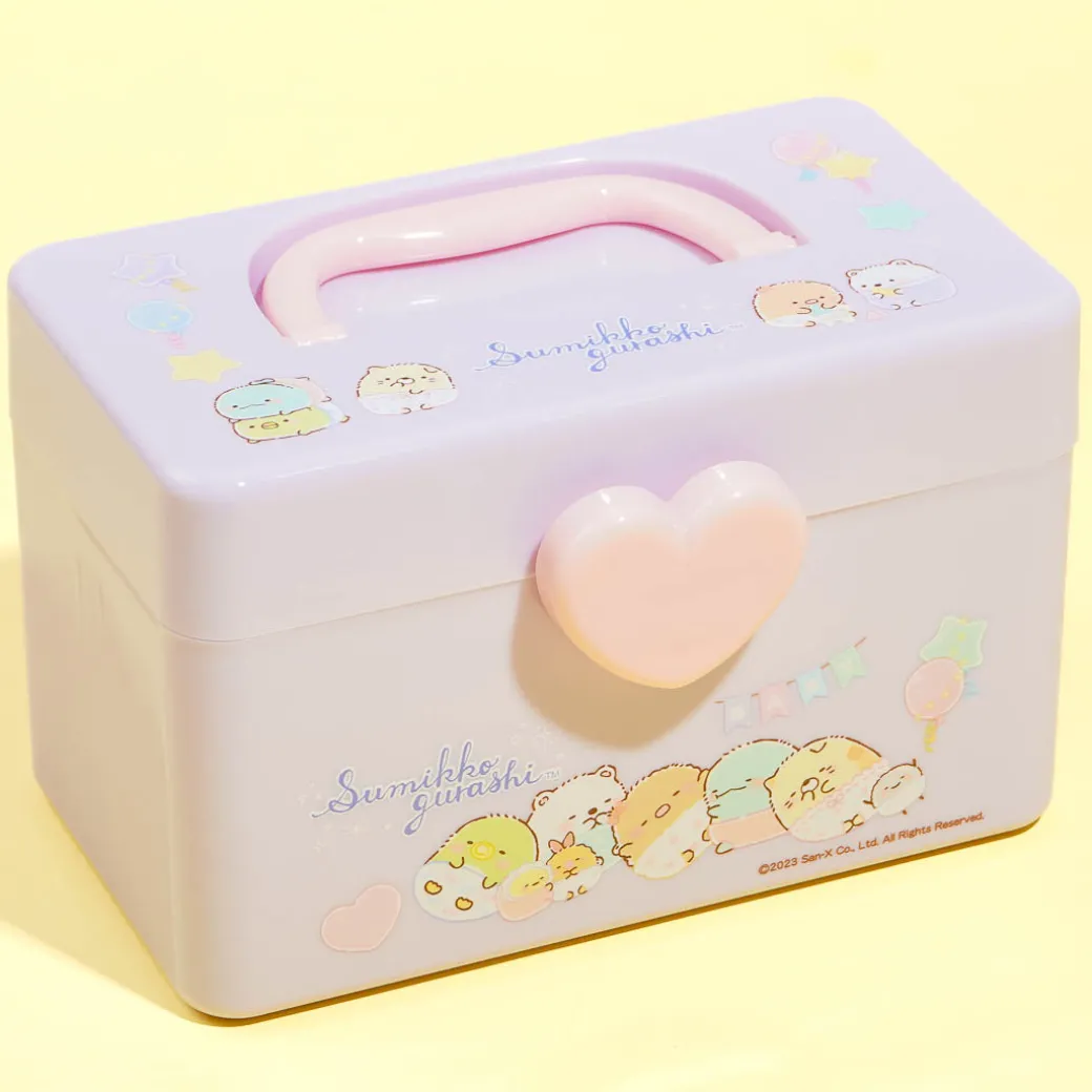 Keep your makeup, trinkets, and other things inside this super kawaii storage box. This handy case features prints of the Sumikko Gurashi as babies! It has a heart-shaped lock, a nifty handle, and a removable tray inside.