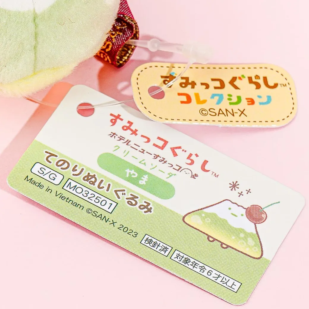 Yama from Sumikko Gurashi looks like a yummy cream soda! This design comes from the Sumikko Gurashi Hotel series. Have fun playing with this bean-filled mini plushie!