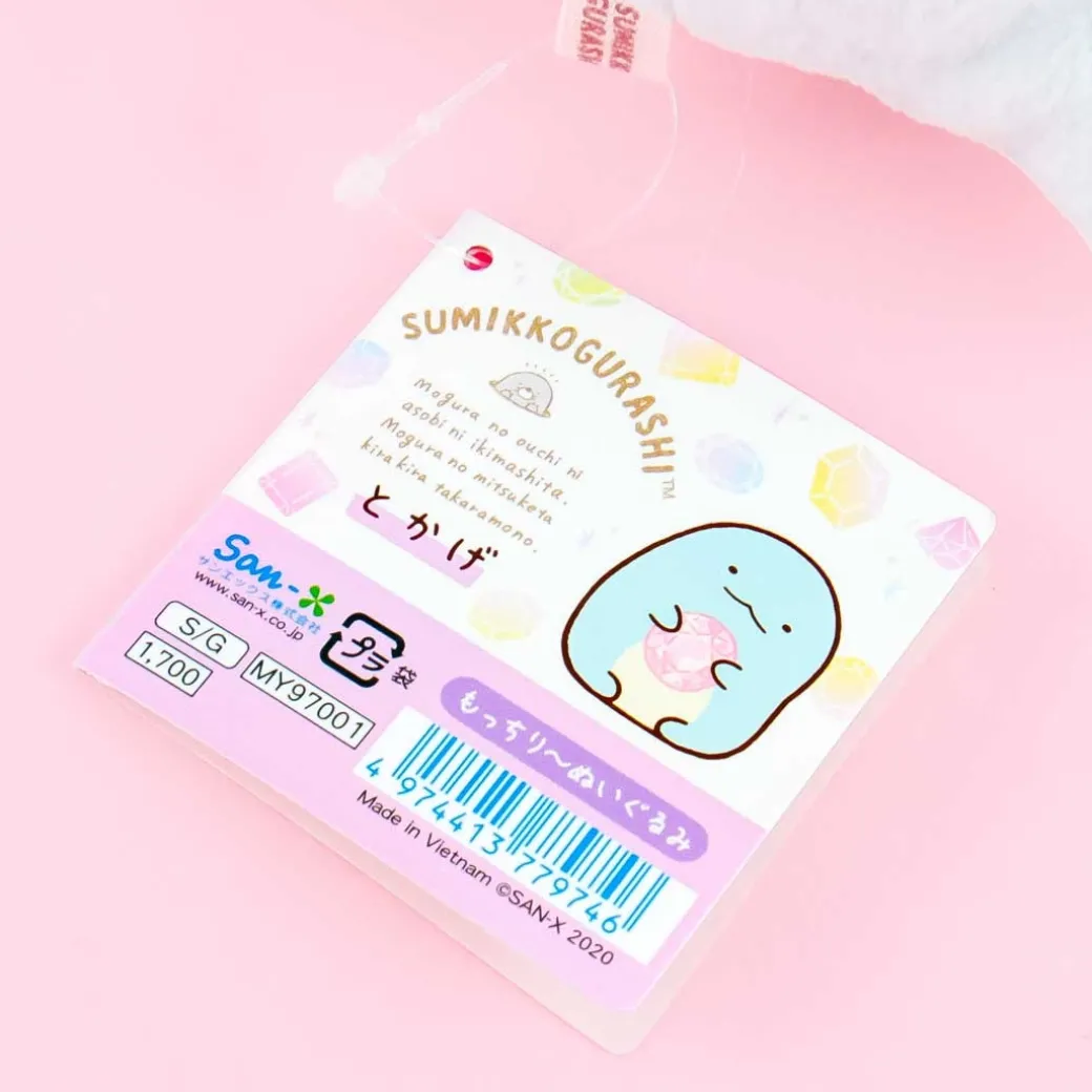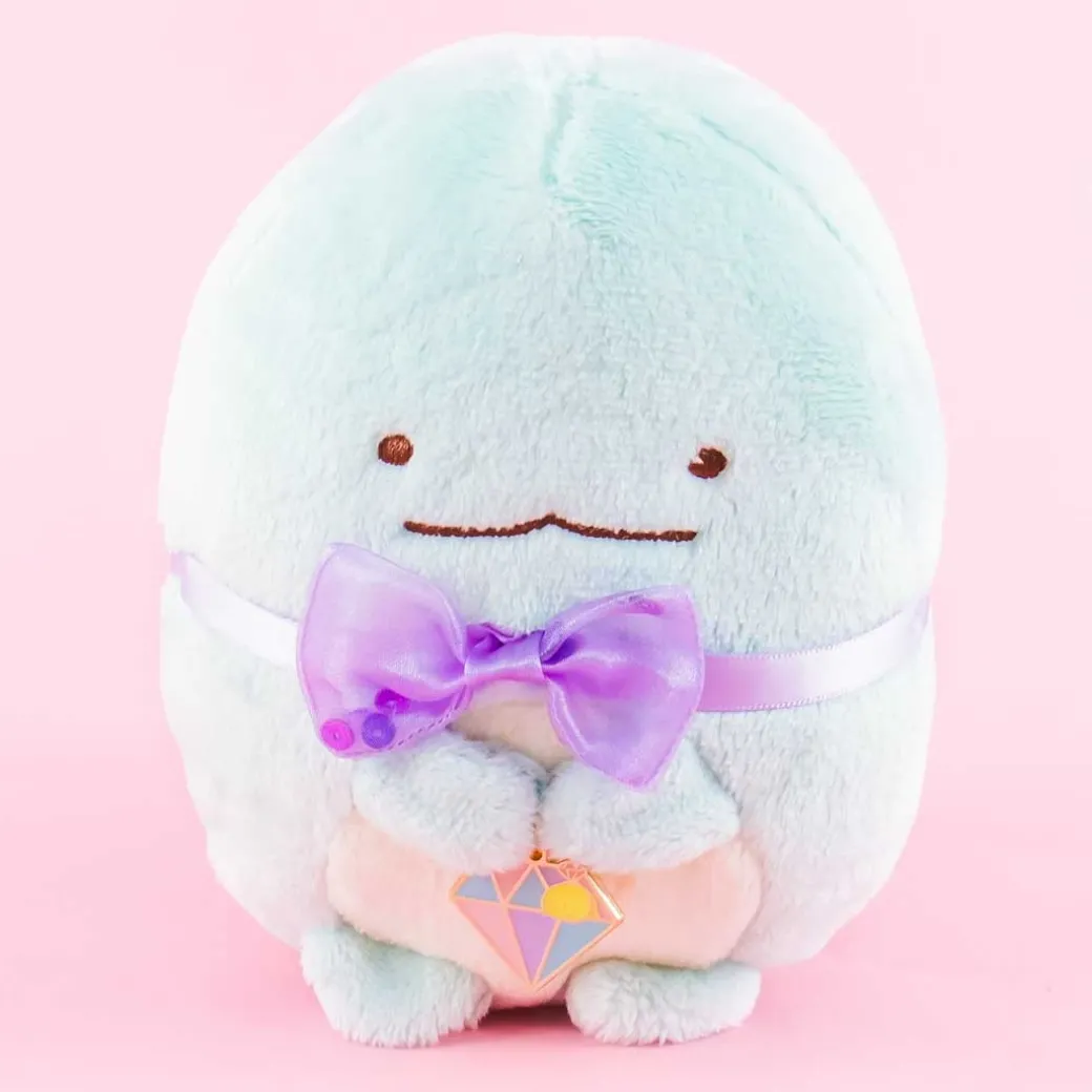 - A medium-sized Tokage character plushie from Sumikko Gurashi who’s wearing a bowtie