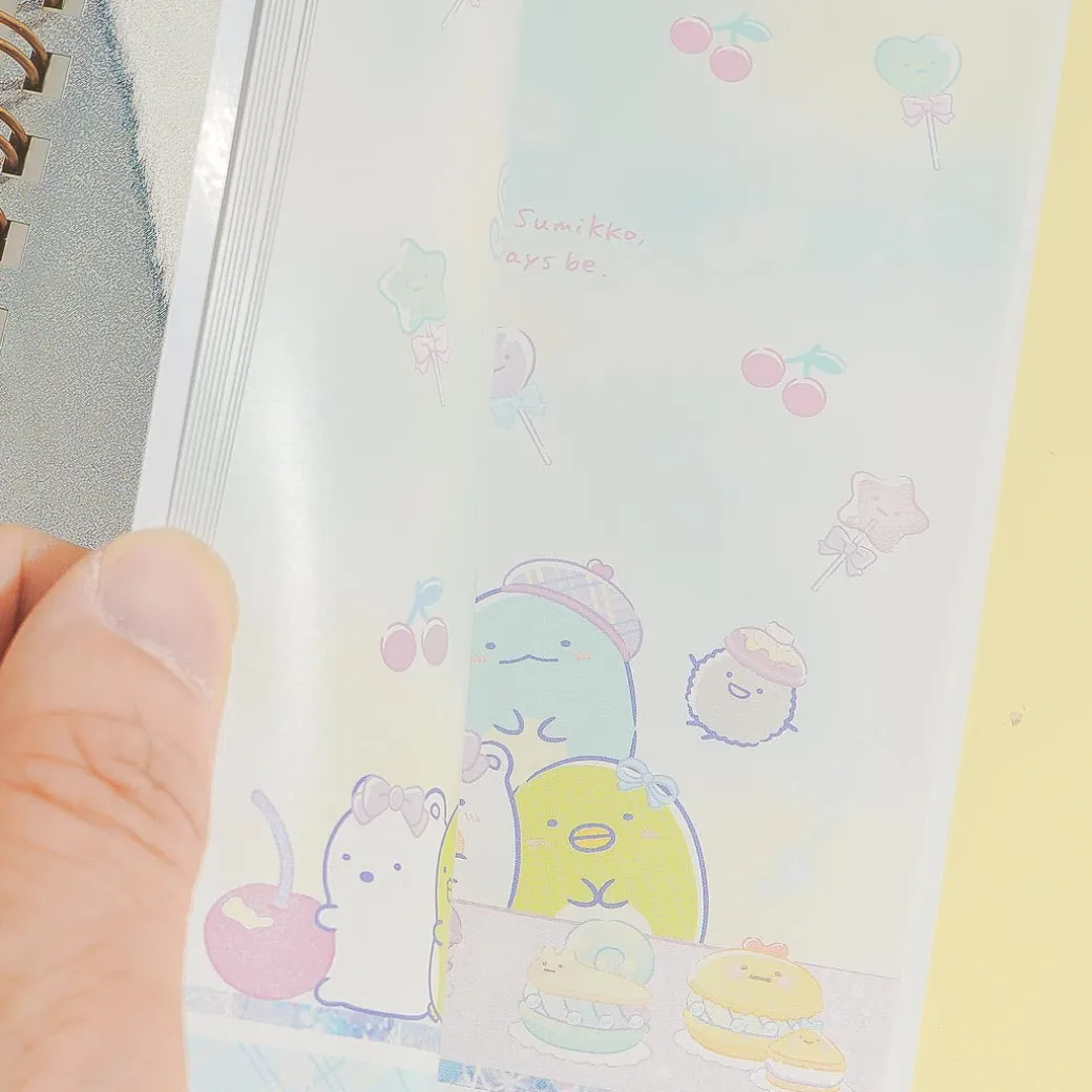 This special sticker notebook features cute illustrations of Sumikko Gurashi and macarons! The pages are stickers that are bound with double rings and can be peeled off. It’s perfect for your journals and scrapbooks!