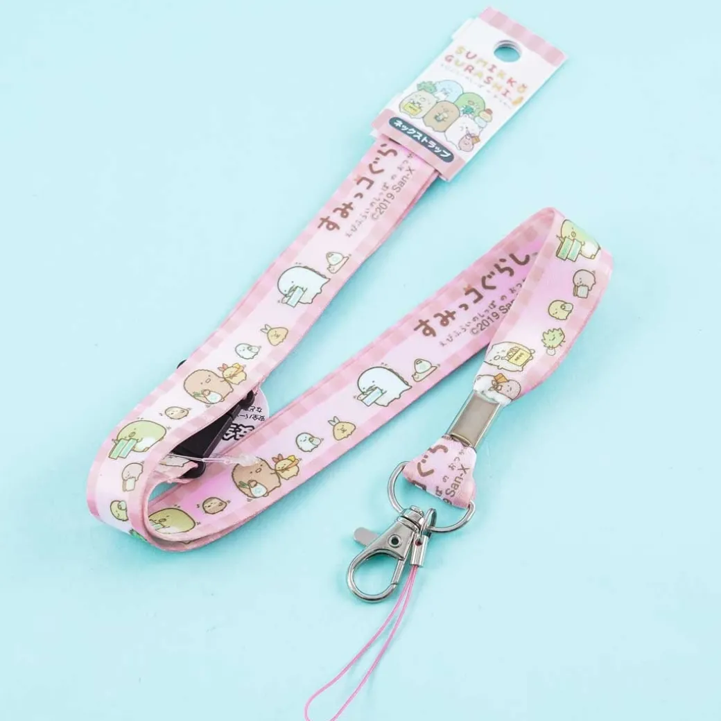 - A super cute lanyard featuring Sumikko Gurashi shopping in a market