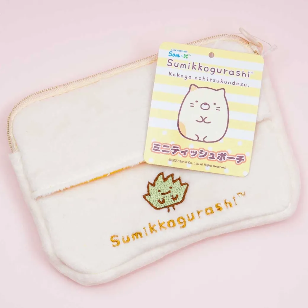- A cute zippered mini tissue pouch illustrated with Neko from the Sumikko Gurashi