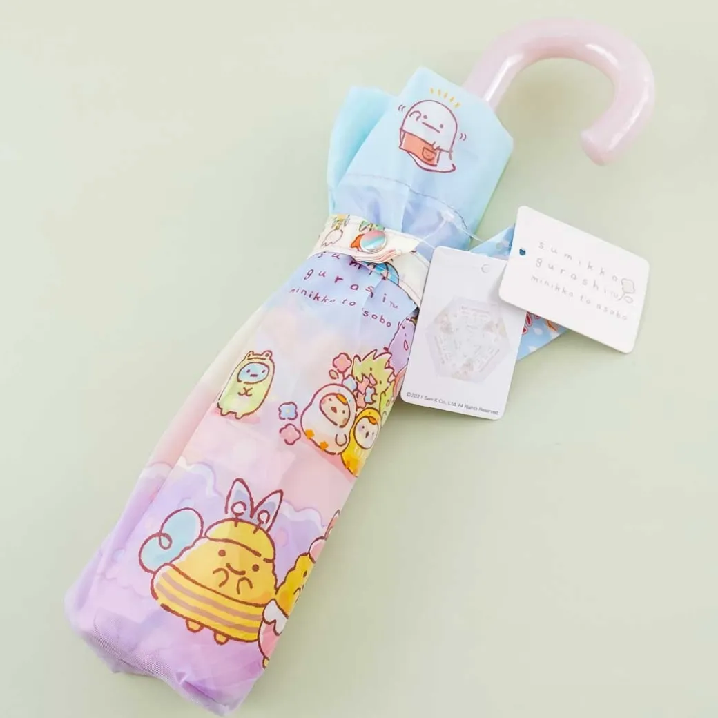 - A foldable compact umbrella featuring the Sumikko Gurashi characters having fun under the sun