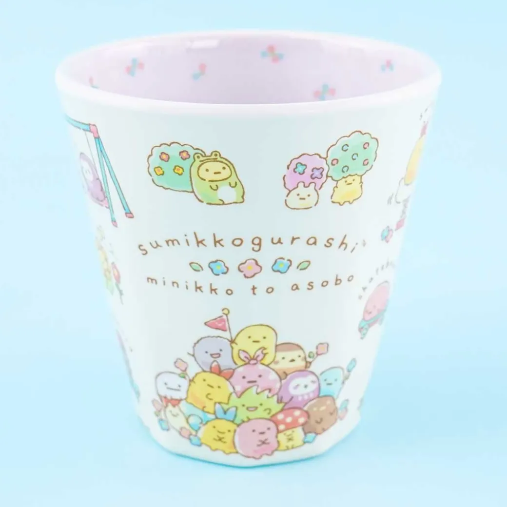 - A drinking cup with kawaii prints of the Sumikko Gurashi characters from the Minikko To Asobo collection