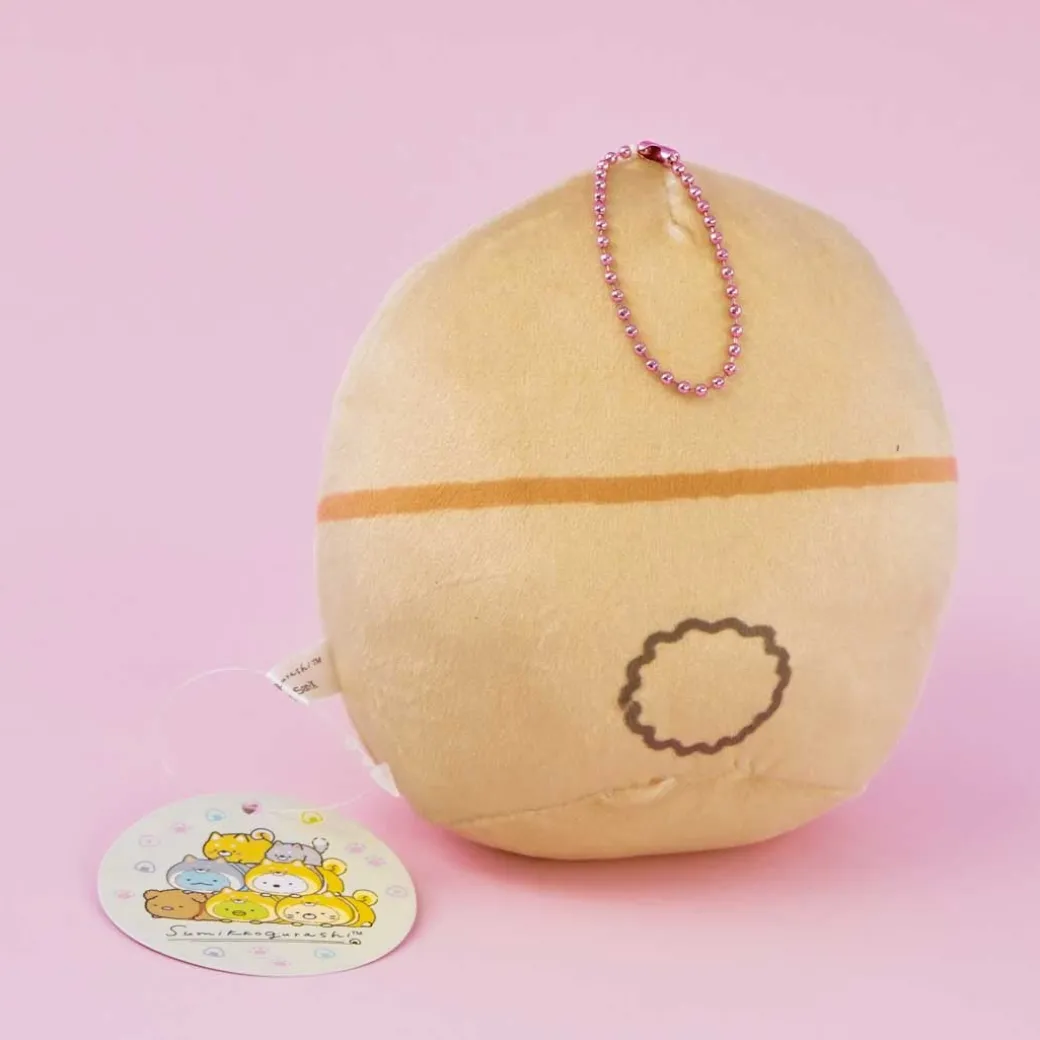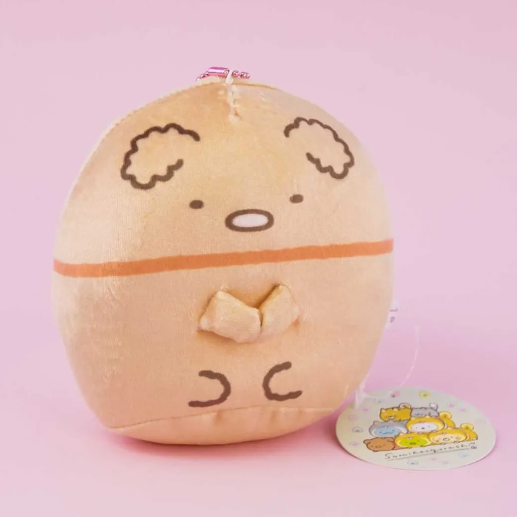 - A medium Tonkatsu round plushie charm wearing a dog onesie costume