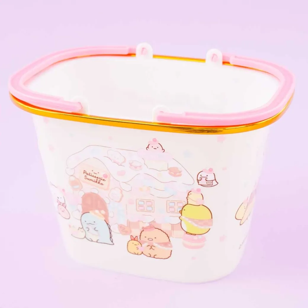 - A cute mini basket featuring prints of Neko and his friends from the Sumikko Gurashi eating donuts