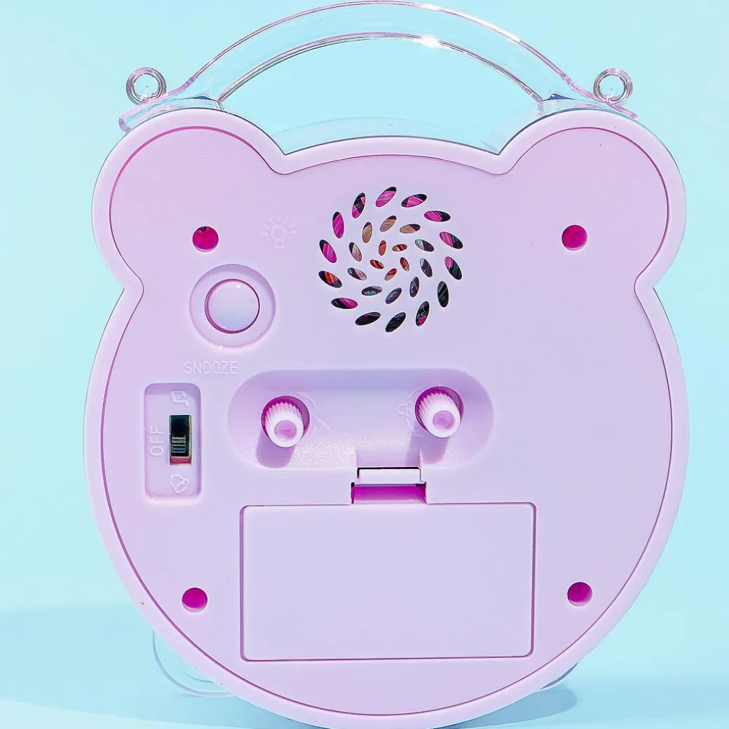 - Features a light switch, a bell and melody sound switch, and a snooze function