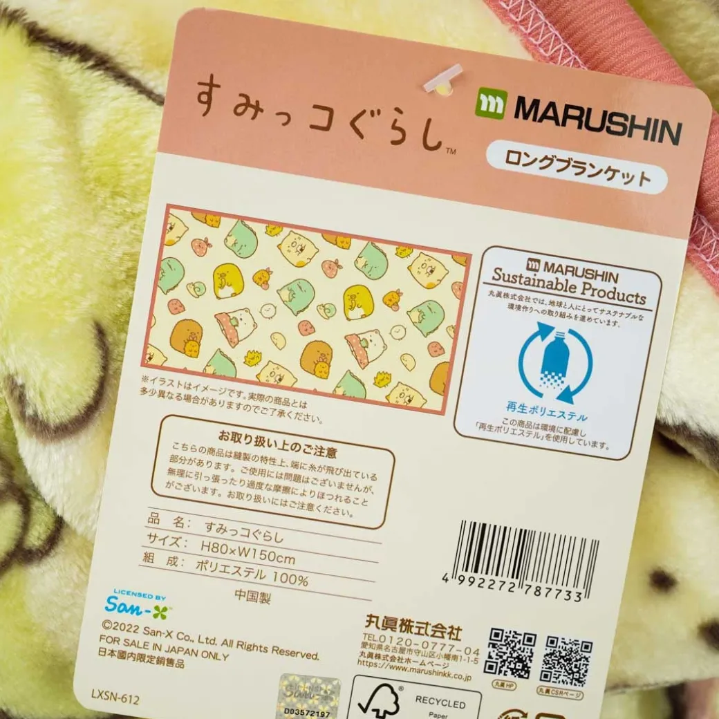 - A long blanket featuring kawaii prints of the Sumikko Gurashi gang