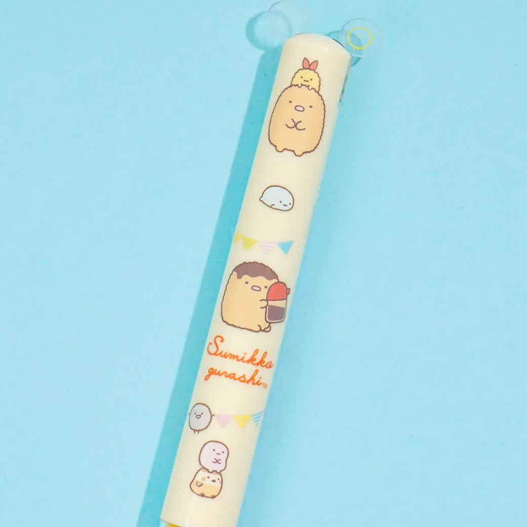 This cute click pen features prints of the Sumikko Gurashi gang having a party. Use it to write down important notes at work or at school! It has two different ink colors that you can use – black and red.