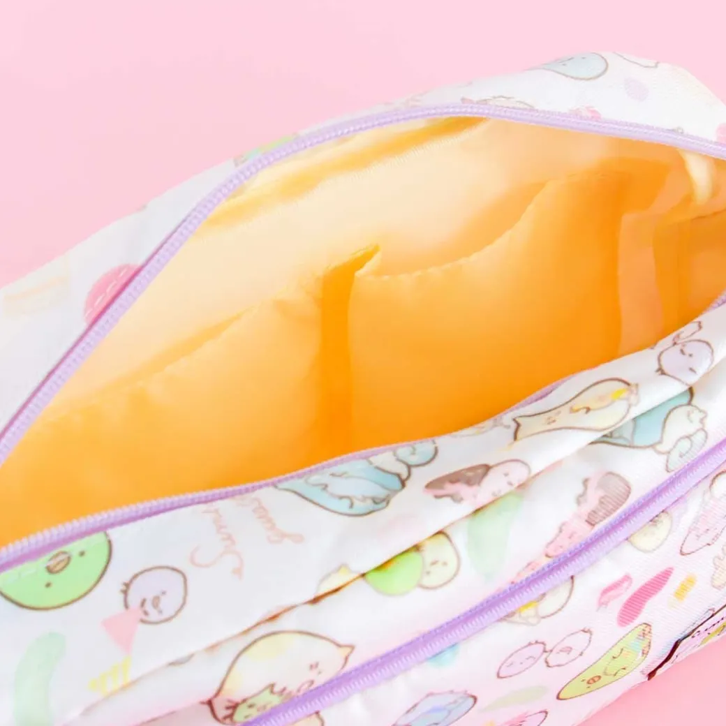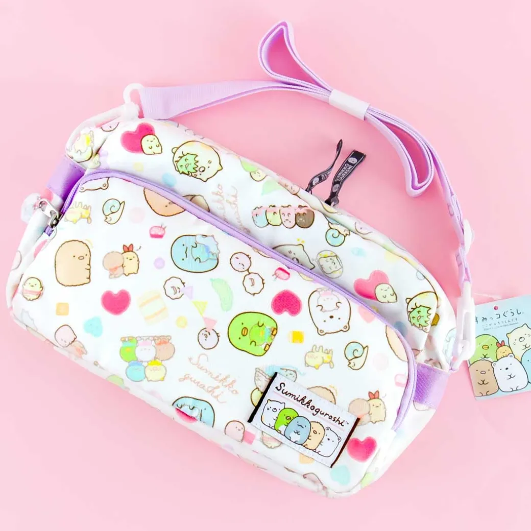 - A zippered sling bag featuring Sumikko Gurashi characters having a party