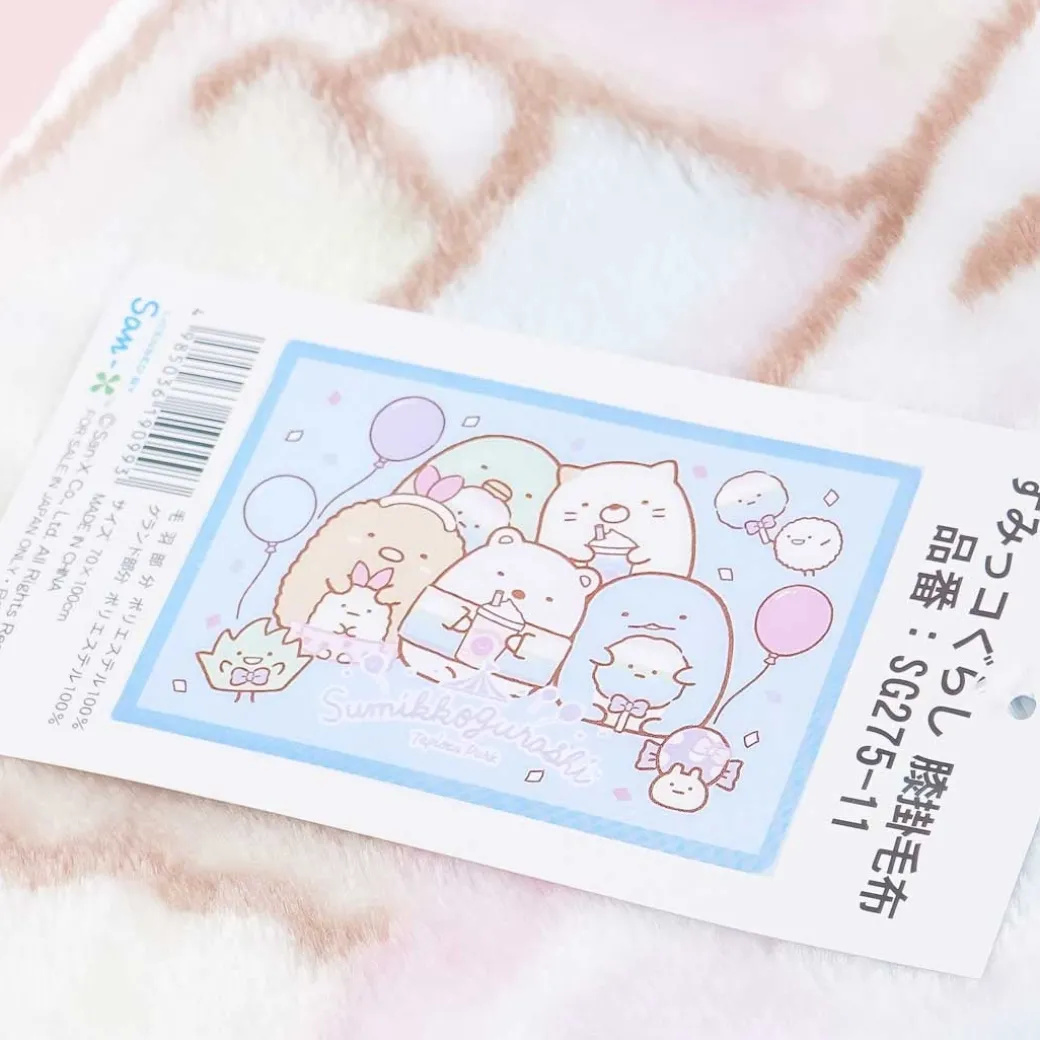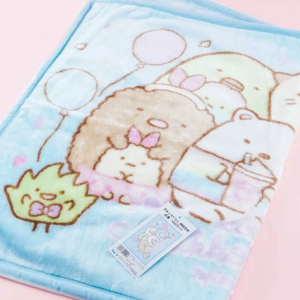 - A kawaii blanket illustrated with the Sumikko Gurashi at a party