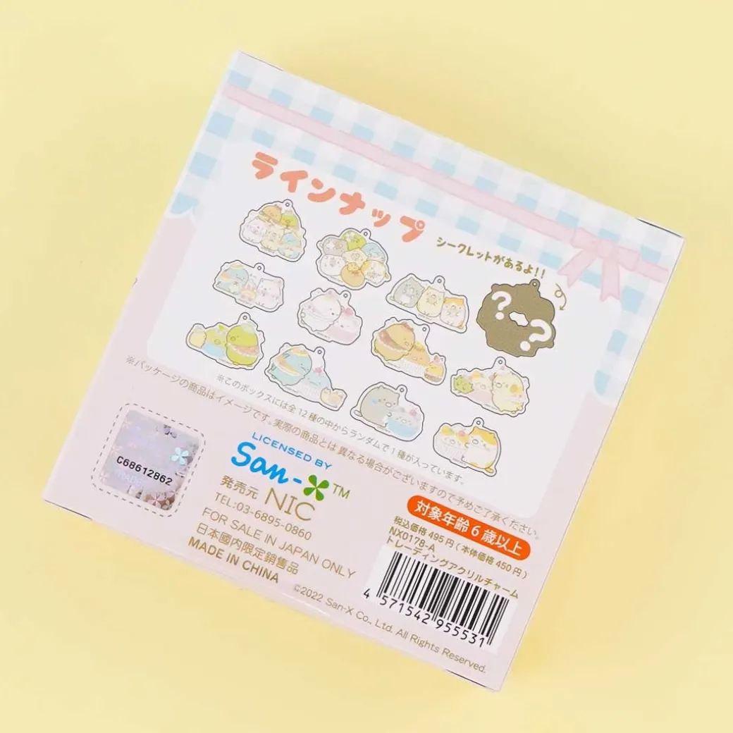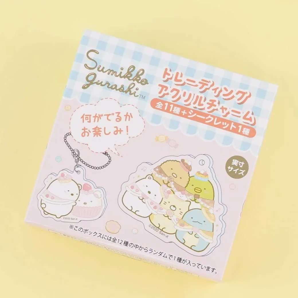 - A kawaii die-cut charm featuring random Sumikko Gurashi characters dressed as different pastries