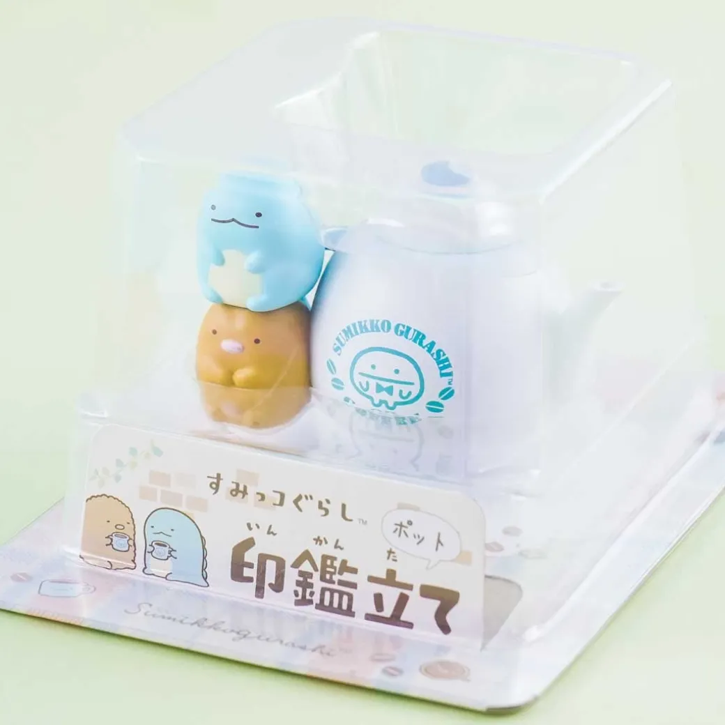 - A cute Sumikko Gurashi pen holder figurine featuring Tokage and Tonkatsu