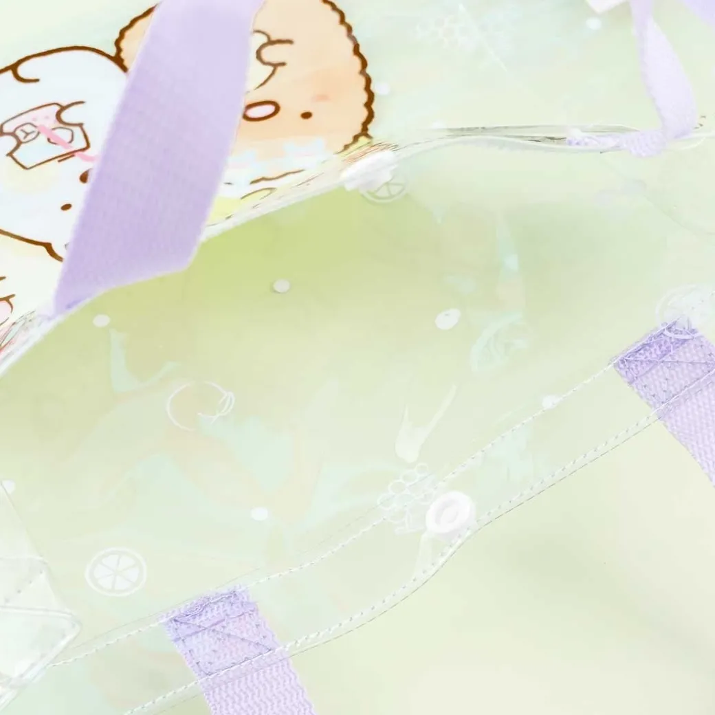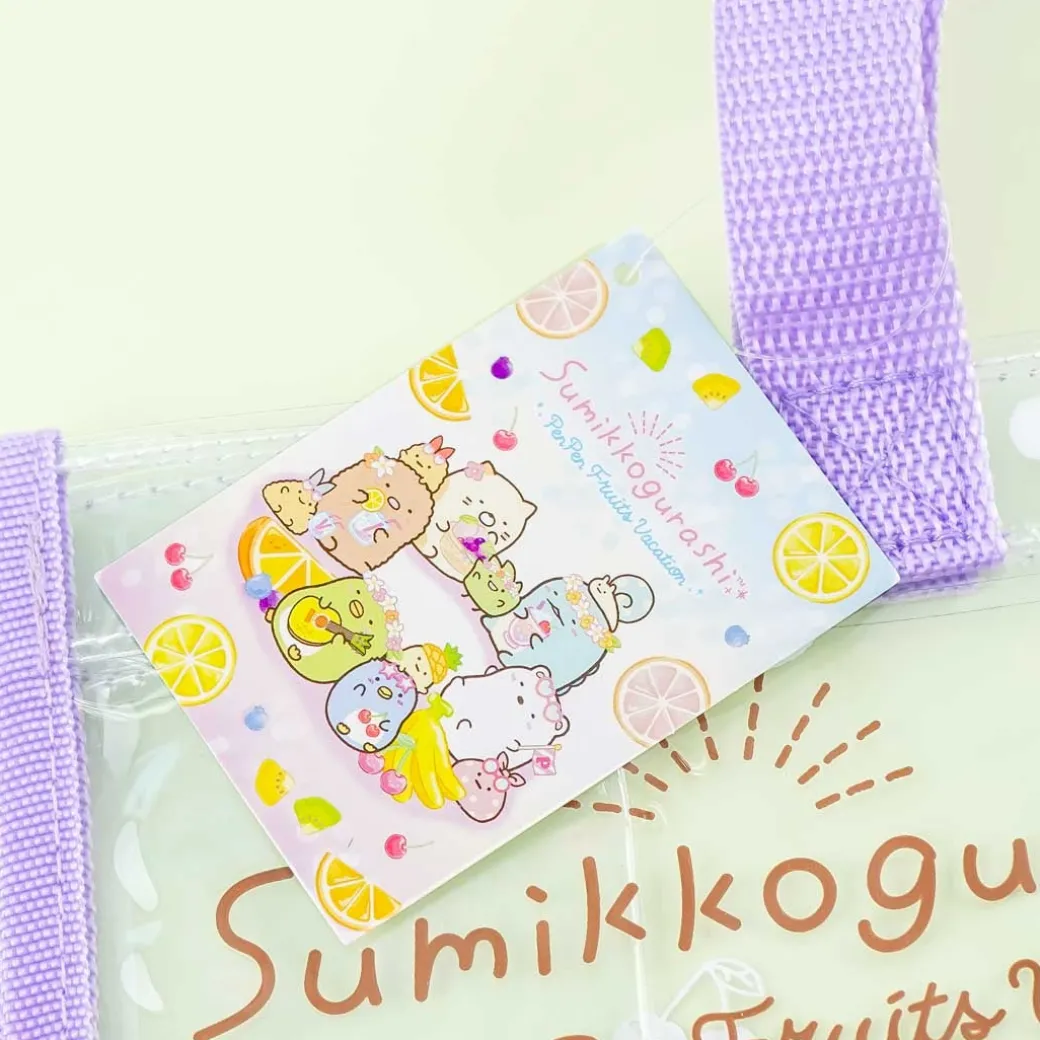 - A super cute clear vinyl tote bag showcasing the Sumikko Gurashi with flowers and fruits