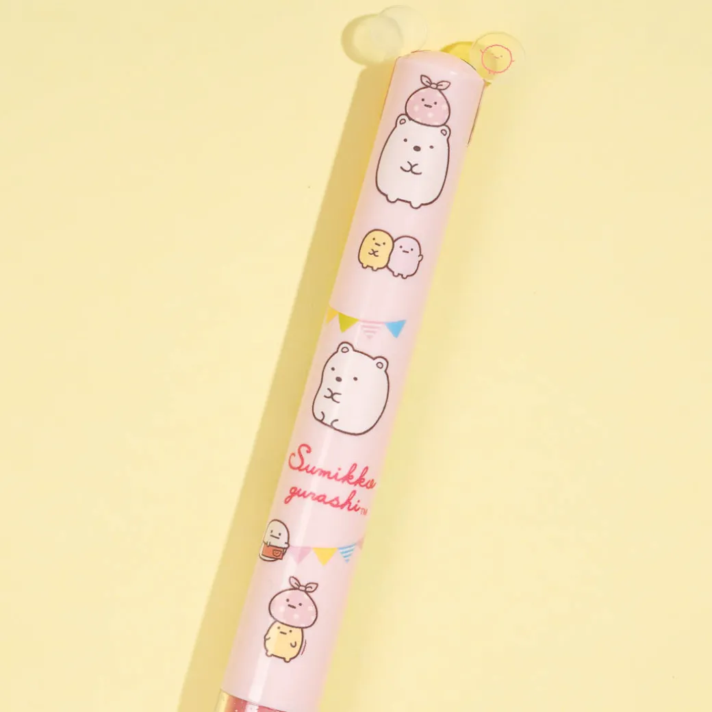 This cute click pen showcases prints of the Sumikko Gurashi having a fun party! It also has kawaii little polka dots. You can use two different colors to write – black and red. Have fun using this pen to write short stories!