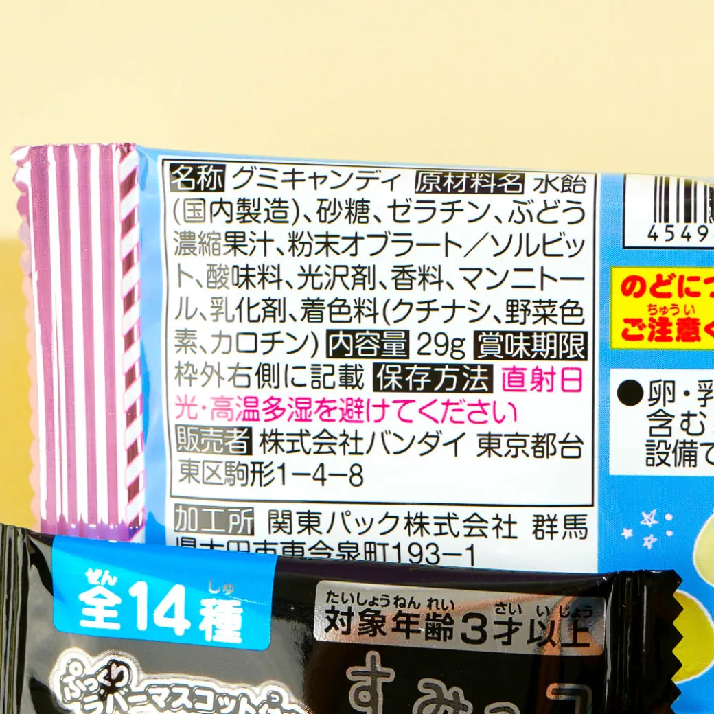 These grape-flavored “pukkuri” or plump Sumikko Gurashi gummies dressed as ghosts are the perfect Halloween treat! Each pack comes with a matching rubber charm that you can attach to your bag.