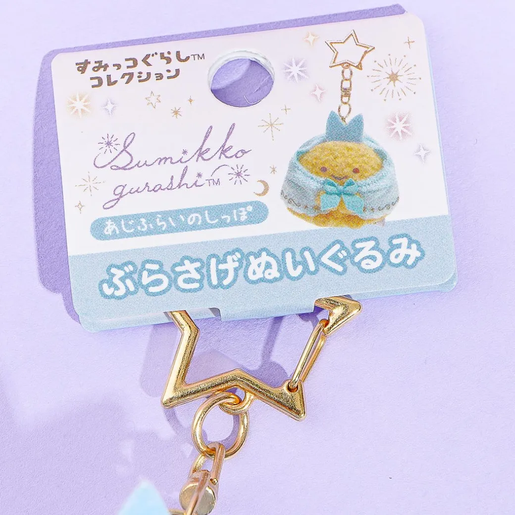 Kawaii-fy your school or work bag by attaching this Aji Furai no Shippo plushie charm! This mini cutie is dressed in a magical bunny cloak and is attached to a golden chain. It comes from the “Rabbit’s Mysterious Spell” collection from Sumikko Gurashi!