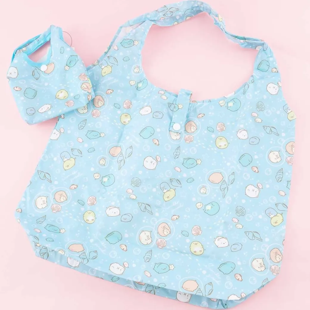 - A super kawaii eco bag covered in prints of the Sumikko Gurashi with seashells and bubbles