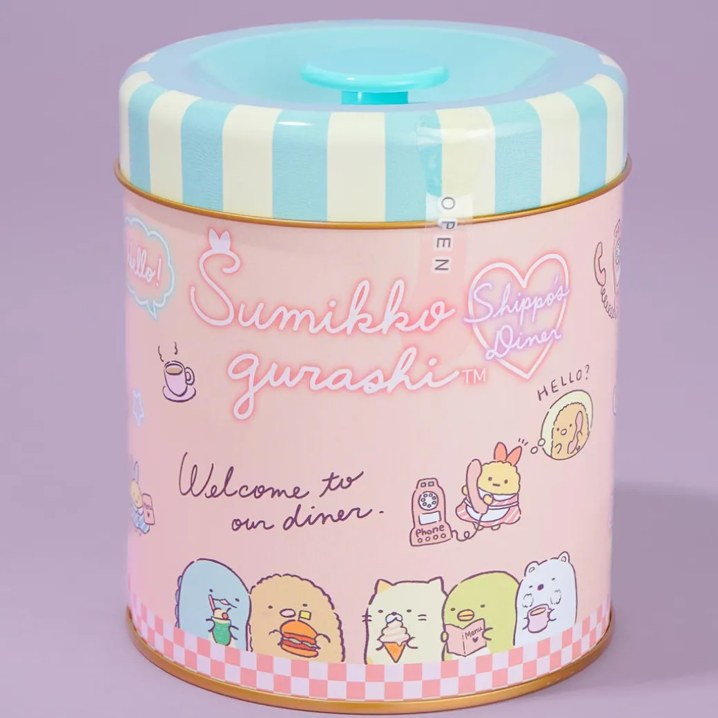 Give this super cute tin filled with yummy mini choco chip cookies to your bestie! The can features illustrations of the Sumikko Gurashi gang working at Ebifurai No Shippo’s diner!